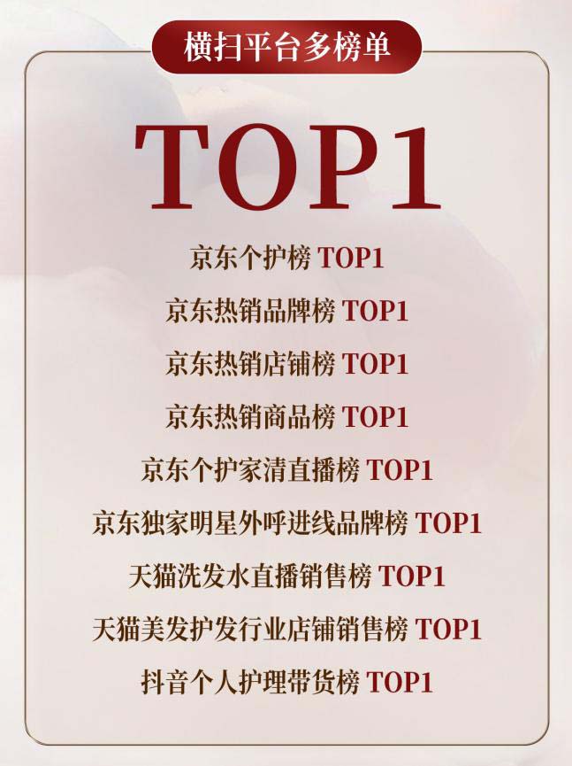 这不仅是一场声势浩大的商业代言落地,更为业界提供了一个深究经典国货如何实现年轻化跃迁的绝佳商业样本——官宣首日战绩斐然,全渠道明星代言商品销售额3200万+,明星同款套组现货20400套售罄,明星同款产品售出300000支,全网总曝光强势突破3亿次,同时登顶京东、抖音、天猫三大电商平台多个榜单TOP1,微博星品影响力总榜TOP1 ,社交媒体互动量10w人次……剥开流量的表象,这是一场关乎“国货突围”的标志性胜利。它以前所未有的音量向市场证明:在进阶高端洗护的赛道上,中国品牌已将“科研硬实力”与“情感沟通“融会贯通;并成功唤醒用户对于“经典国货”+“国民品牌”的深刻印记。