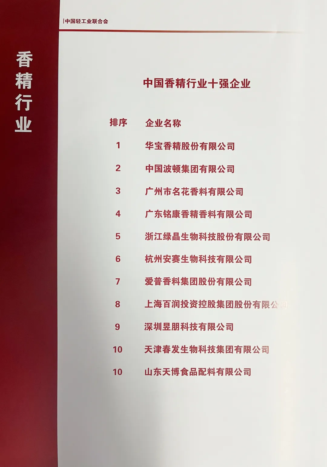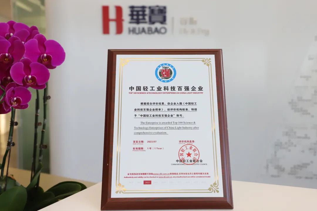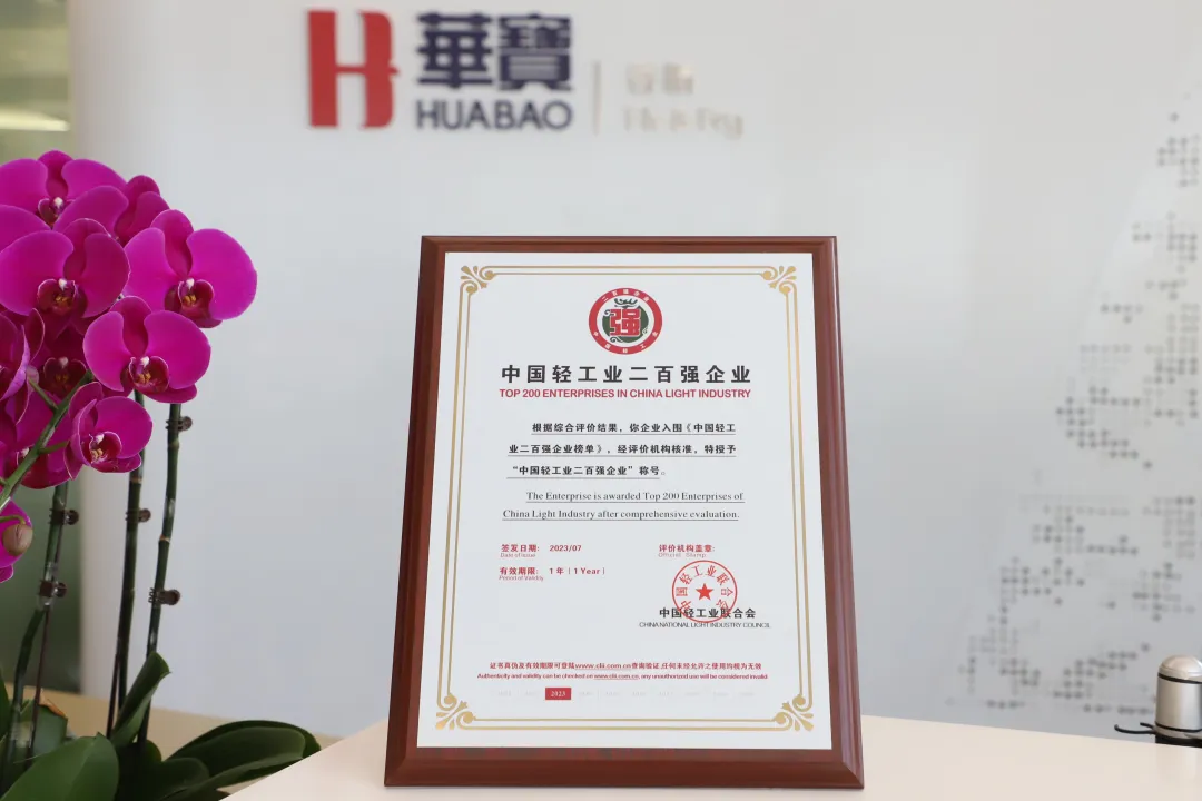 自 2019 年以来,凭借自身强大的科技创新能力和综合实力,华宝连续多年荣获中国轻工业 200 强企业称号,并在调味品行业十强企业中排名第一。此次入选榜单充分展示了华宝在研发投入、营收利润、技术创新、行业转型升级以及引领行业发展方面的成就和实力。