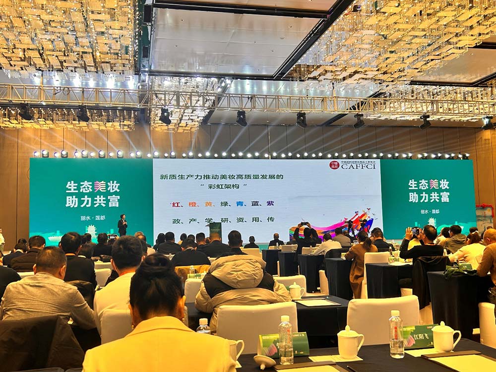 12月27日,以“生态美妆,助力共富”为主题的浙江省化妆品产业高质量发展大会暨首届生态美妆产业发展会议在丽水莲都召开。大会由中国香料香精化妆品工业协会(以下简称:中国香妆协会)指导,丽水市人民政府、浙江省药品监督管理局主办,莲都区人民政府、丽水市市场监督管理局承办,浙江省健康产品化妆品行业协会、浙江省药学会化妆品专业委员会、温州医科大学皮肤科学研究院支持。