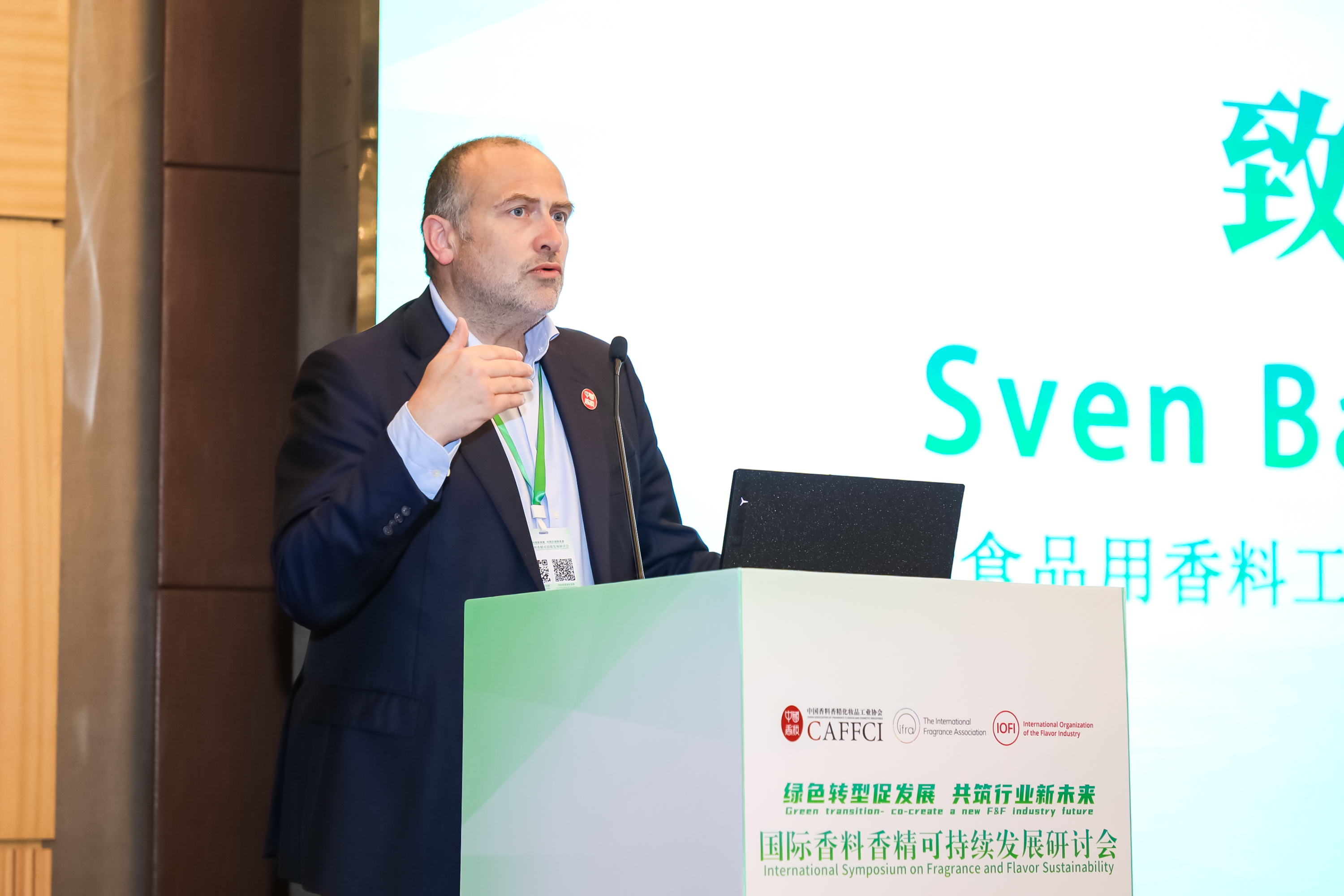 此次会议采取了主题演讲与圆桌访谈相结合的方式,会议主题是“绿色转型促发展 共筑行业新未来“。中国香妆协会(CAFFCI)理事长、医学博士颜江瑛,国际食品用香料工业组织(IOFI)执行理事Sven Ballschmiede,国际日用香料协会(IFRA) 主席Alexander Mohr出席会议并致辞。