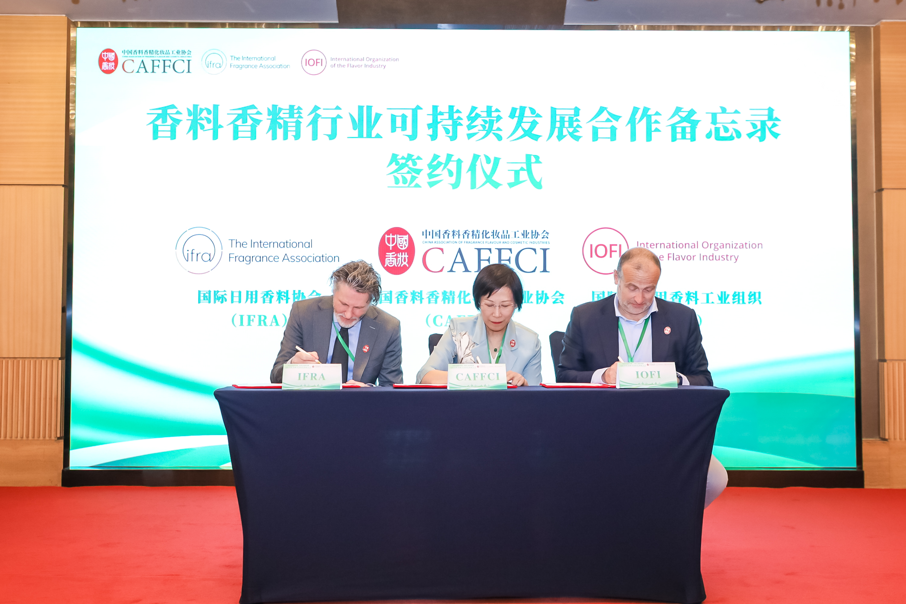在当天上午,还进行了包括IFRA-IOFI联合可持续章程介绍在内的多项议题。同时,中国香妆协会(CAFFCI)与IFRA和IOFI三方还共同签署《香料香精行业可持续发展合作备忘录》,一起致力于搭建香妆行业ESG服务平台,进一步助力全球香料香精行业绿色、健康、可持续发展。