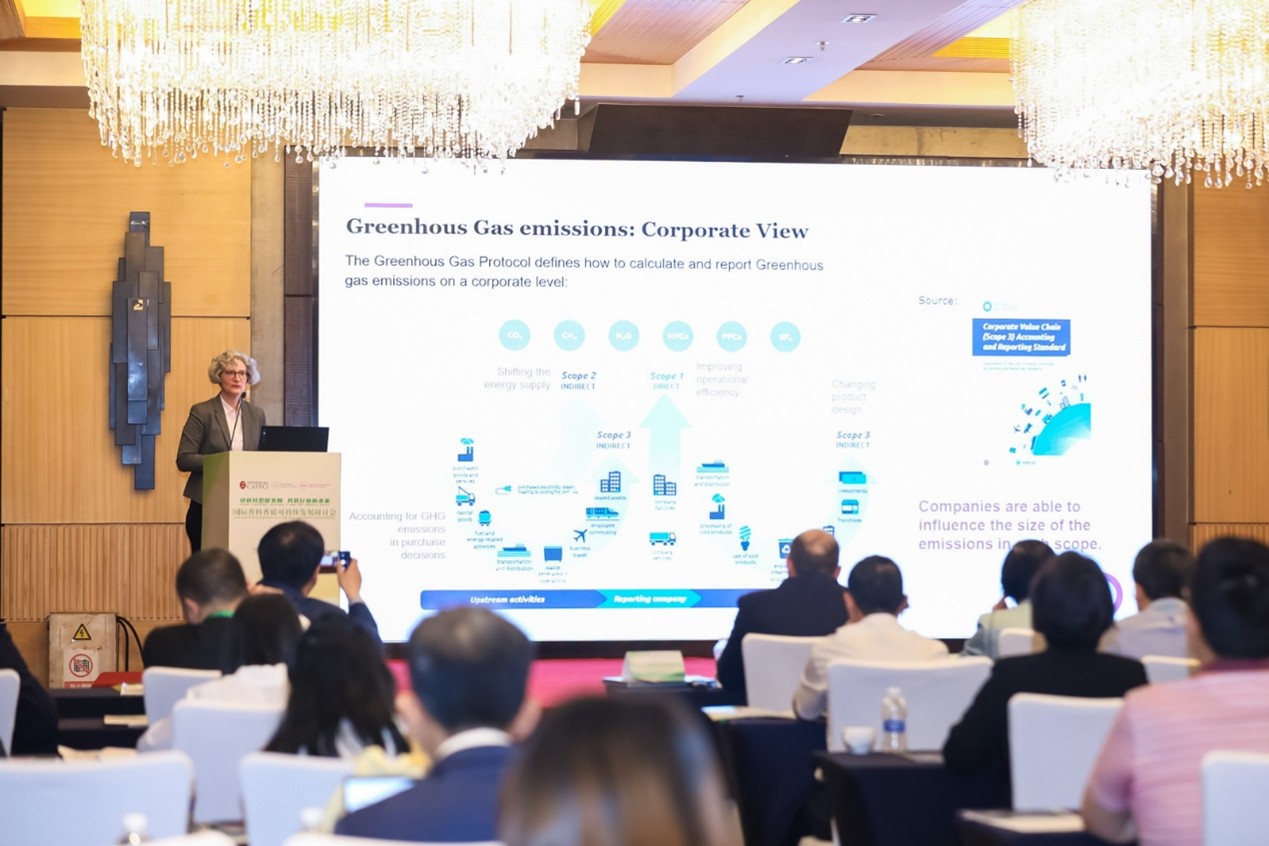 在当天上午的会议上,中国香妆协会可持续发展(ESG)专业委员会副主任委员、责扬天下创始人殷格非作了《可持续经济全球化下的香料香精产业新生态》的主题分享;国际食品用香料工业组织(IOFI)执行理事Sven Ballschmiede作了《国际食用香料工业组织(IOFI)的香料成分范围 3 排放因子数据库项目》的主题分享;国际日用香料协会(IFRA)主席作了《全球香料香精行业:合作与负责任的原料采集》的主题分享;IFRA-IOFI可持续发展委员会副主委、BASF全球香料业务加速可持续发展工作组负责人Cordula Mock-Knoblauch博士作了《温室气体排放核算:国际日用香料协会(IFRA)关于香精调配与储存的范围1和范围2排放研究结果》的主题分享。