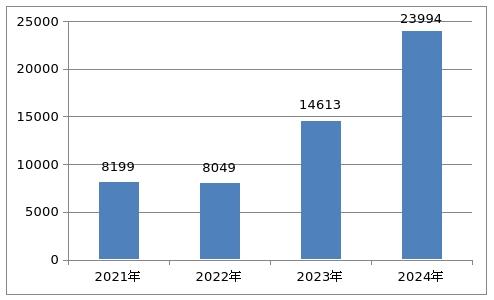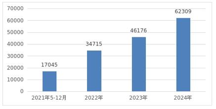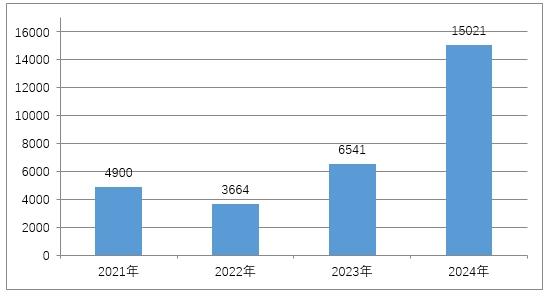图2 2021年至2024年化妆品注册申请受理数据图