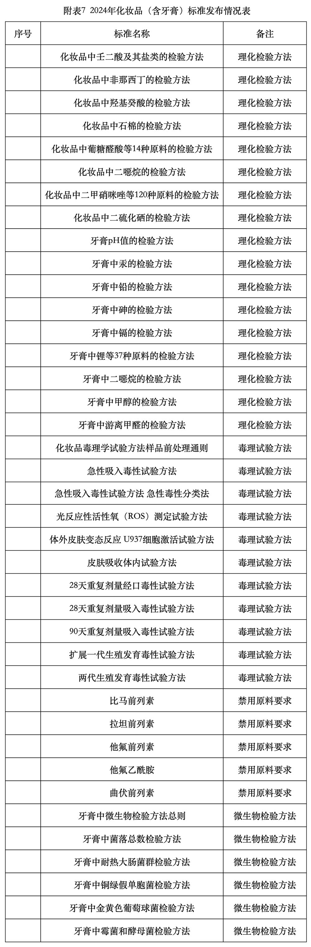 二是组织起草并提请国家药监局发布了化妆品中壬二酸及其盐类的检验方法、牙膏pH值的检验方法等39项化妆品安全技术规范相关标准(见附表7),以及化妆品中双氟拉松丙酸酯的测定、化妆品中非那雄胺等10种组分的测定等2项补充检验方法。