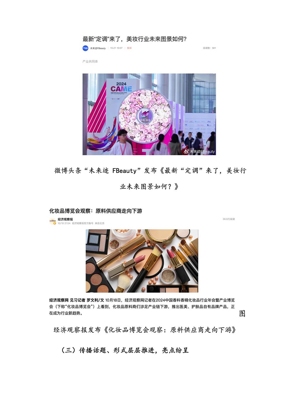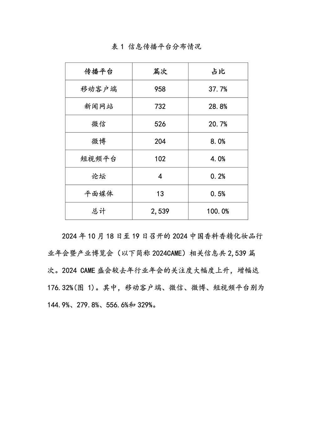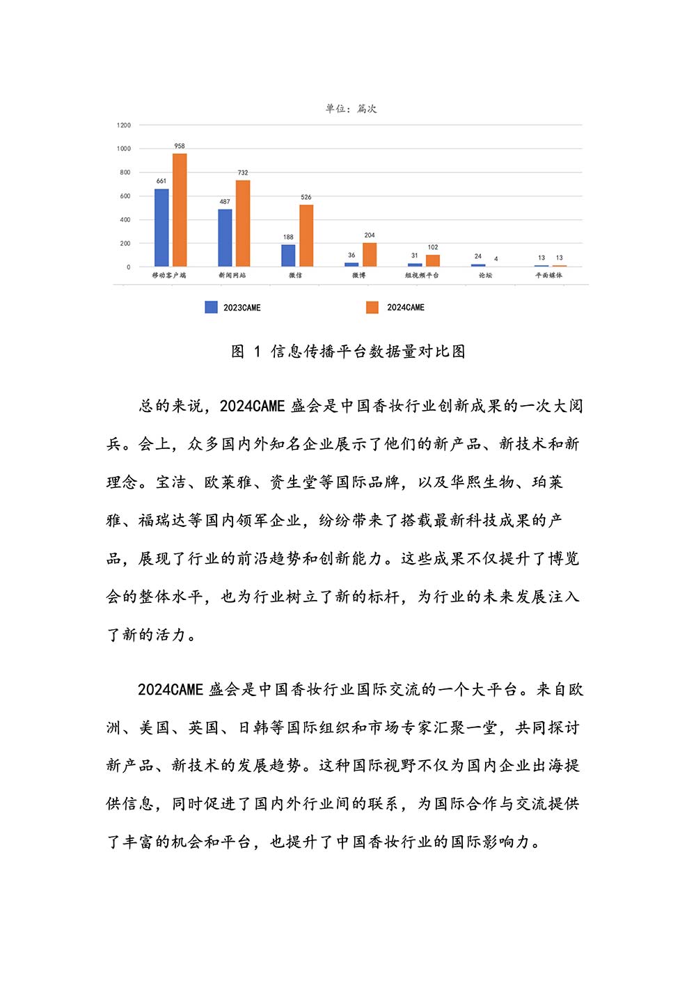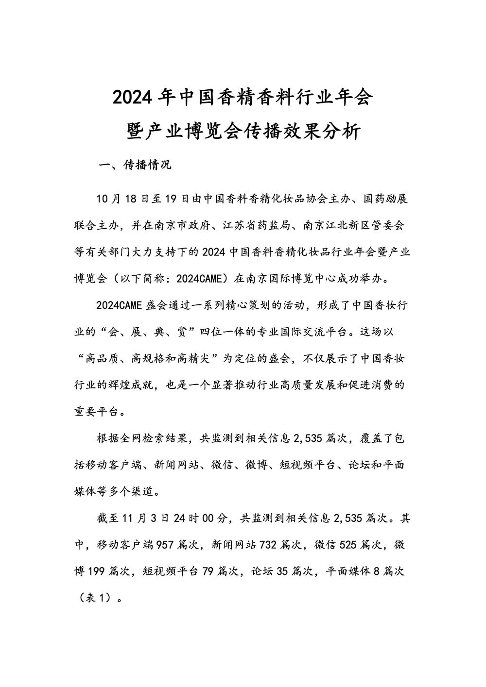 中国香妆融媒体(中国香妆协会主办)舆情传播研究组对此次盛会的报道与传播进行了信息整理和专业分析,制作了《2024 中国香料香精化妆品行业年会暨产业博览会传播效果分析》报告(以下简称:本报告)。本报告由中国香妆融媒体执行总编辑赵洪伟领衔、资深媒体传播专家李若男主笔,并由中国香妆融媒体舆情传播研究组研究员和专家们一起合作完成。