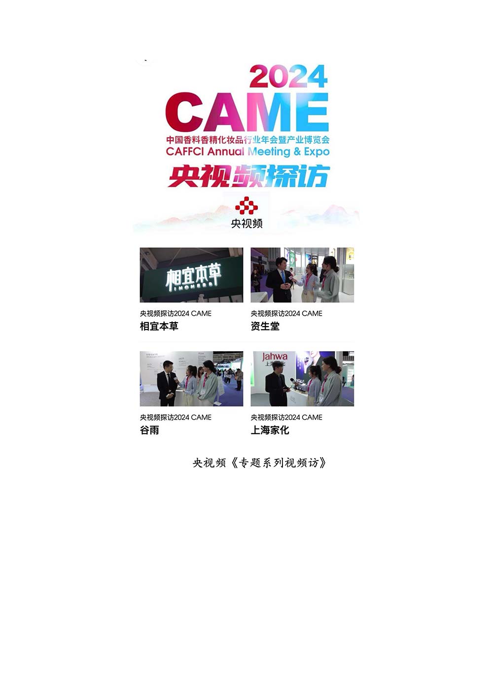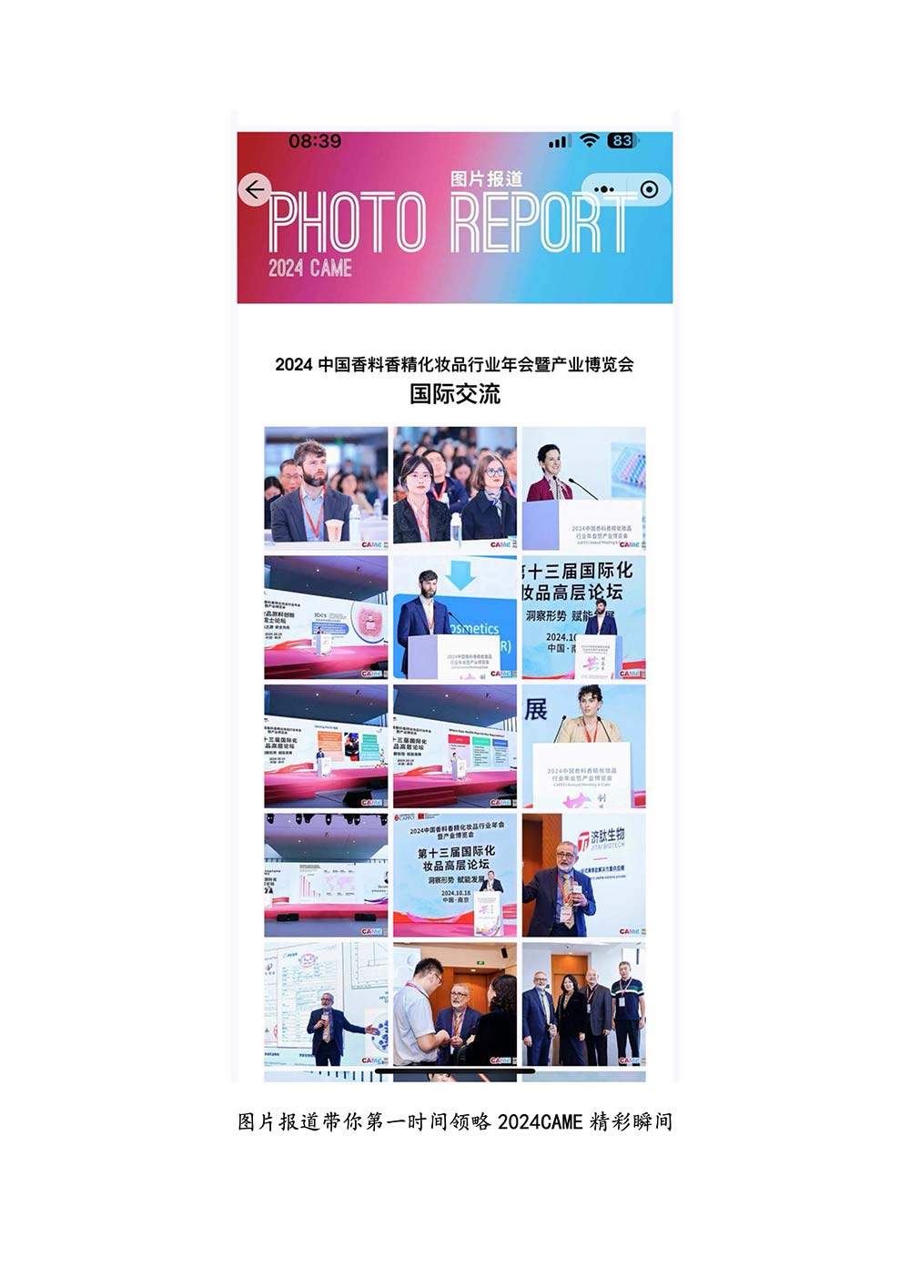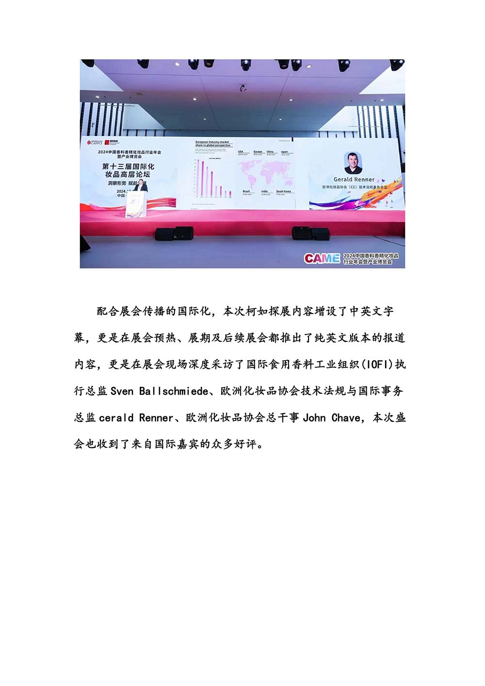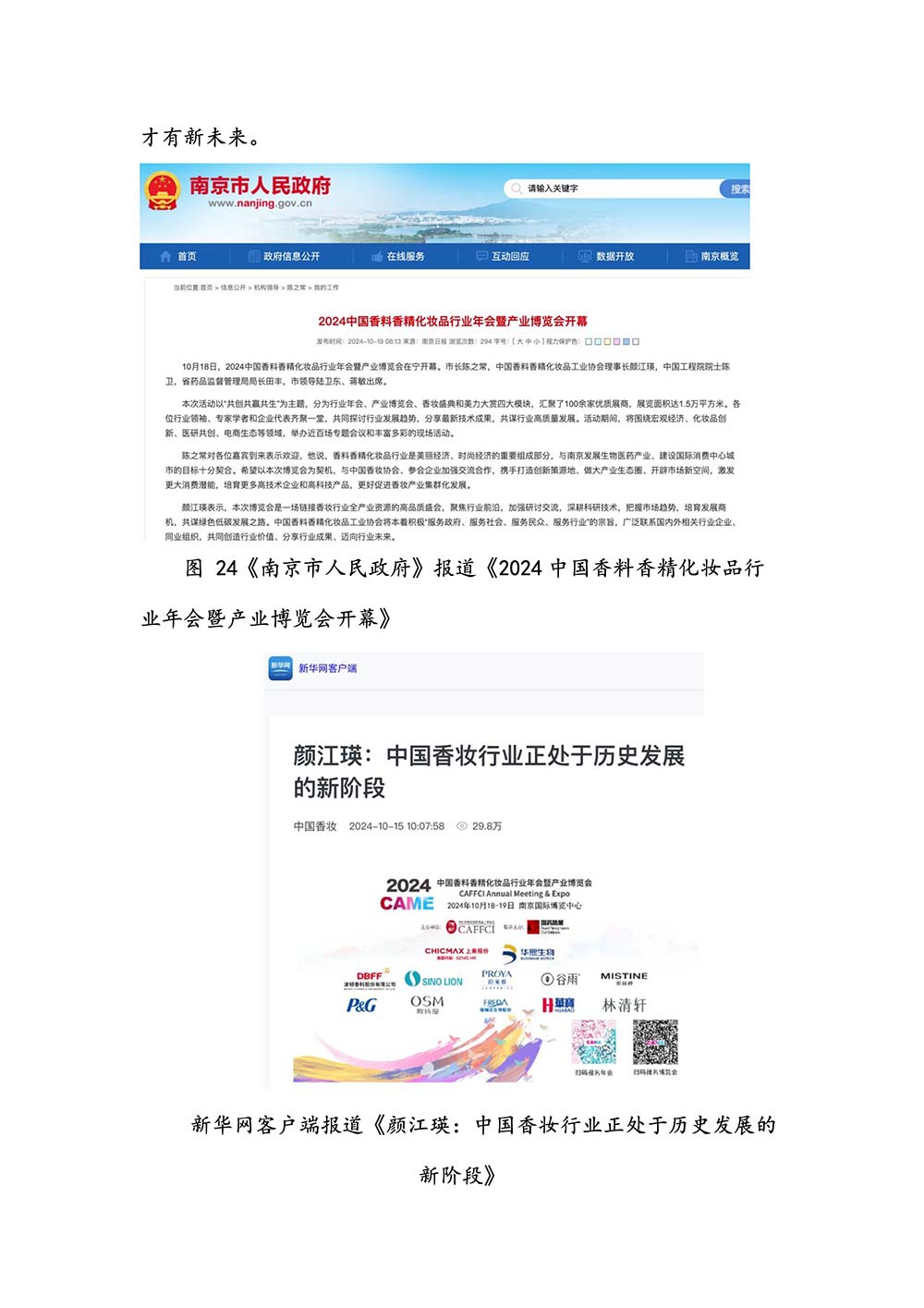编者按:由中国香料香精化妆品工业协会(以下简称:中国香妆协会)主办的2024中国香料香精化妆品行业年会暨产业博览会是一个高品质、高规格、高精尖的行业盛会,于2024年10月18日-19日在南京成功举办,得到了政府、企业、专家学者、媒体机构和社会各界人士的极大关注和认可。众多国际组织和行业人士也参加了此次盛会,并给予高度评价。同时,包括新华网(新华社主办)、央视频(中央广播电视总台主办)、人民日报社人民网•人民健康等三大央媒在内的权威党政媒体、地方媒体、财经媒体、行业媒体等在内的诸多媒体都对此次盛会进行了报道。