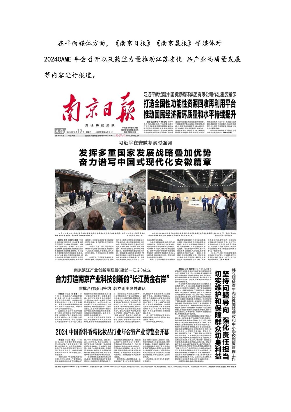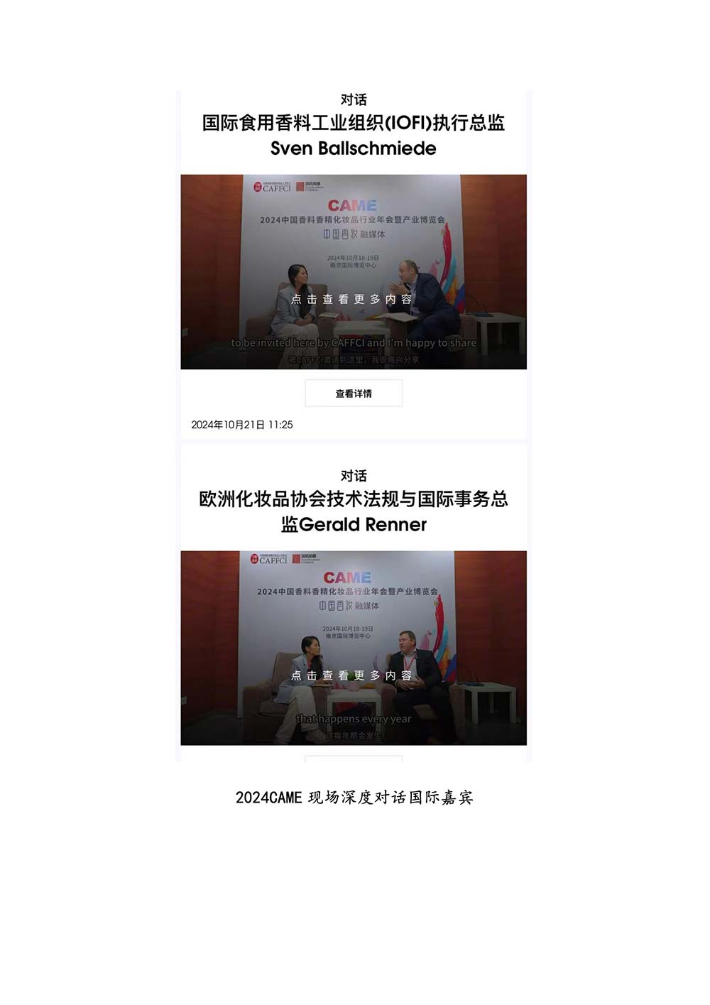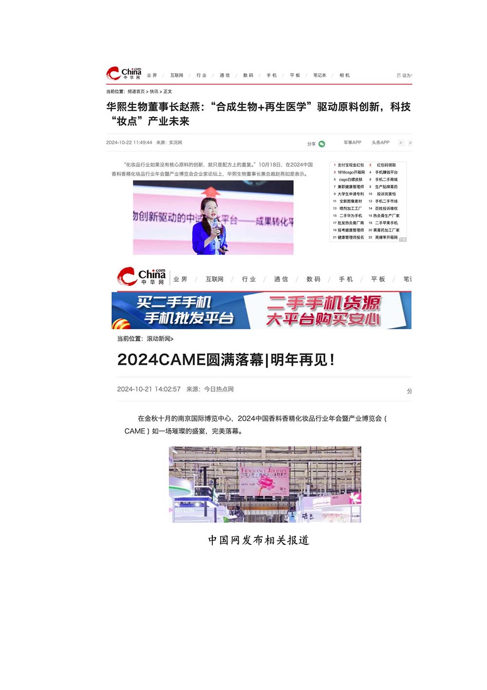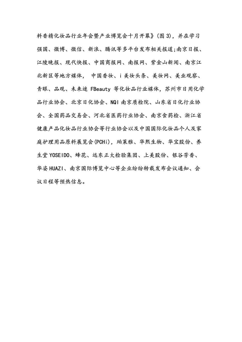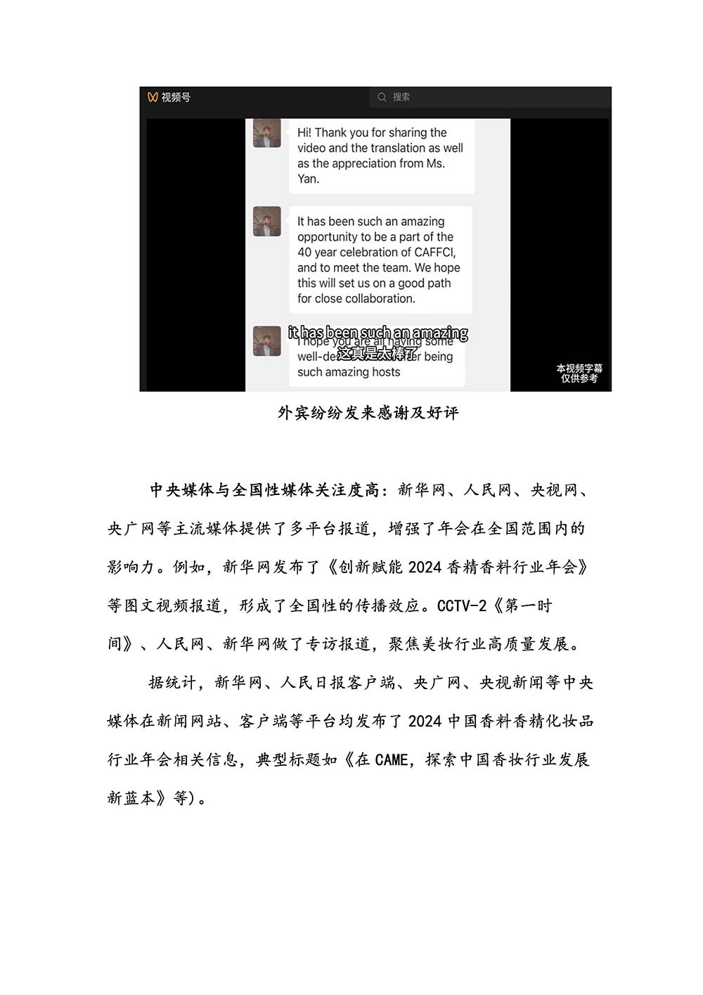 编者按:由中国香料香精化妆品工业协会(以下简称:中国香妆协会)主办的2024中国香料香精化妆品行业年会暨产业博览会是一个高品质、高规格、高精尖的行业盛会,于2024年10月18日-19日在南京成功举办,得到了政府、企业、专家学者、媒体机构和社会各界人士的极大关注和认可。众多国际组织和行业人士也参加了此次盛会,并给予高度评价。同时,包括新华网(新华社主办)、央视频(中央广播电视总台主办)、人民日报社人民网•人民健康等三大央媒在内的权威党政媒体、地方媒体、财经媒体、行业媒体等在内的诸多媒体都对此次盛会进行了报道。
