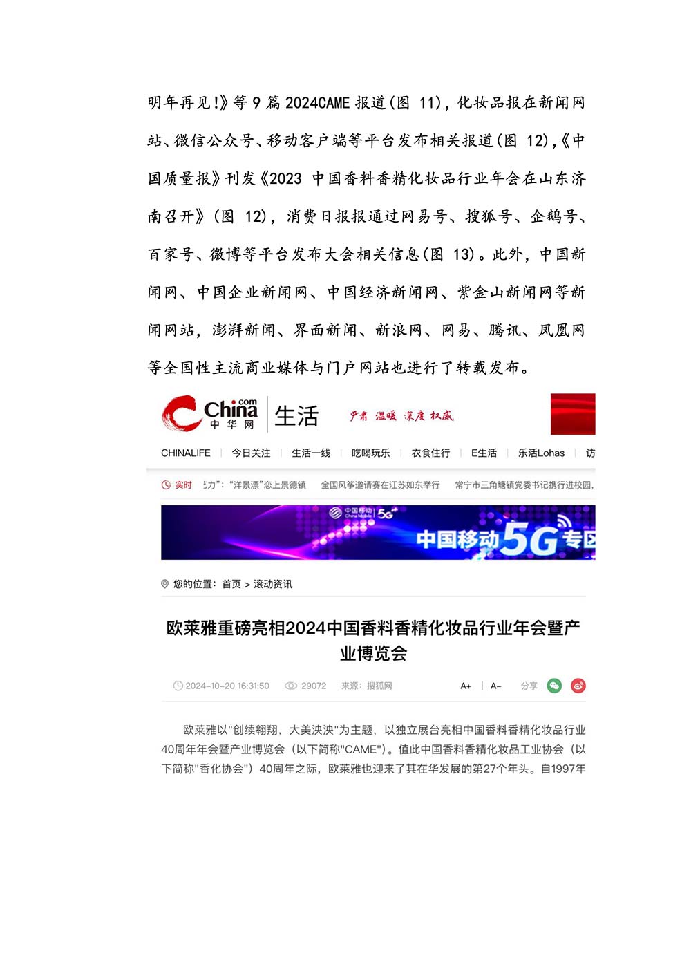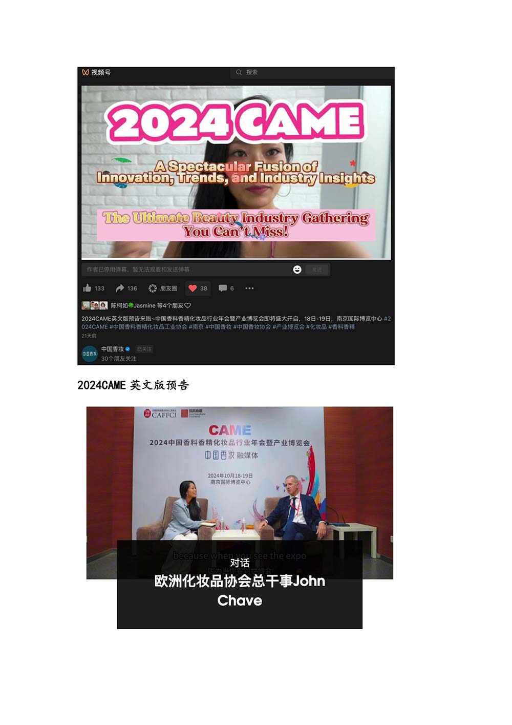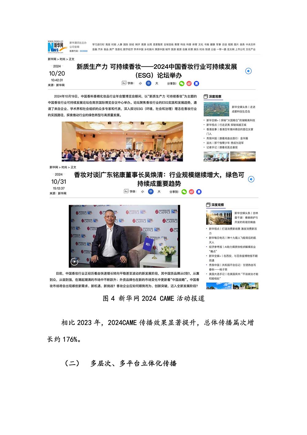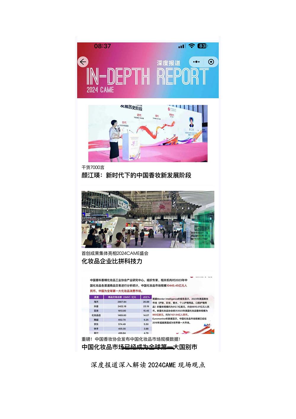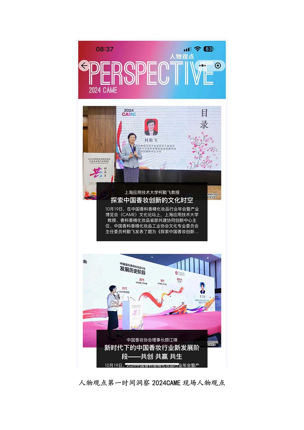 编者按:由中国香料香精化妆品工业协会(以下简称:中国香妆协会)主办的2024中国香料香精化妆品行业年会暨产业博览会是一个高品质、高规格、高精尖的行业盛会,于2024年10月18日-19日在南京成功举办,得到了政府、企业、专家学者、媒体机构和社会各界人士的极大关注和认可。众多国际组织和行业人士也参加了此次盛会,并给予高度评价。同时,包括新华网(新华社主办)、央视频(中央广播电视总台主办)、人民日报社人民网•人民健康等三大央媒在内的权威党政媒体、地方媒体、财经媒体、行业媒体等在内的诸多媒体都对此次盛会进行了报道。