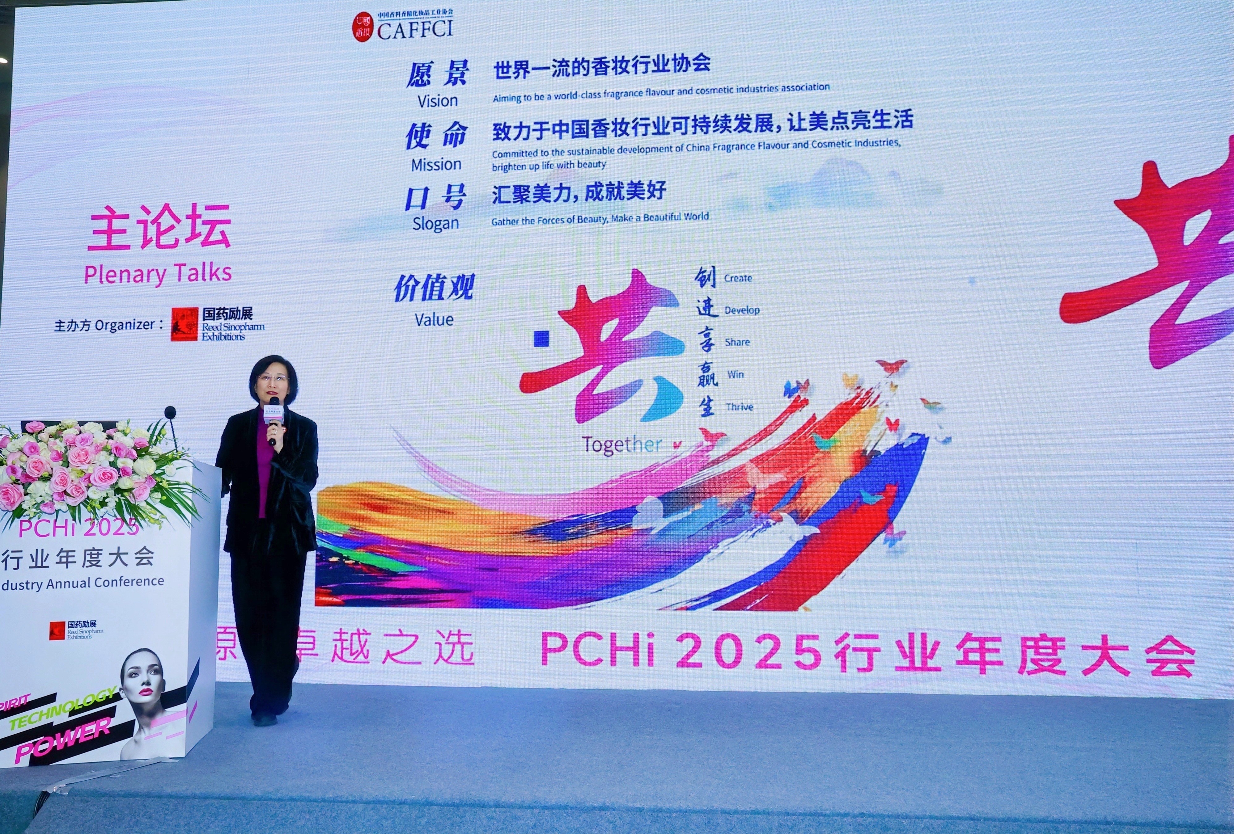 2月19日,中国国际化妆品、个人及家庭护理用品原料展览会 (PCHi2025)在中国进出口商品交易会展馆(广州)拉开大幕。在当天下午的主论坛上,中国香料香精化妆品工业协会理事长、医学博士颜江瑛受邀出席并发表了主题演讲。她说,新时代化妆品原料科技创新的逻辑架构是专业科技创新+人工智能应用+优秀文化引领。