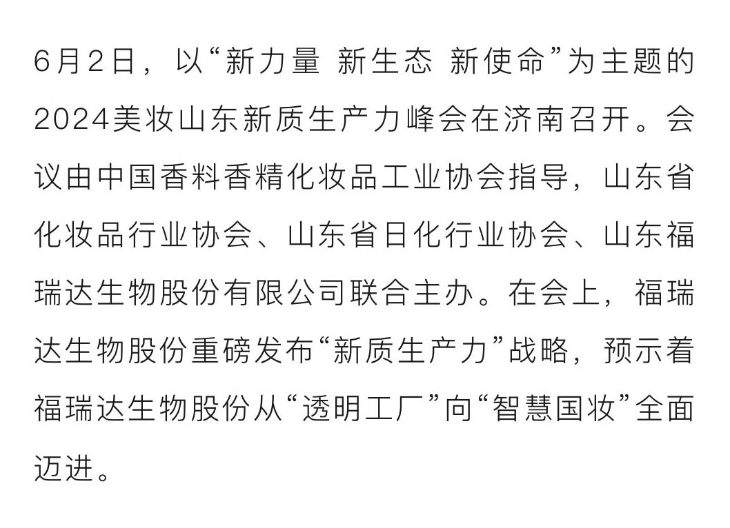 “新质生产力”战略发布,福瑞达向“智慧国妆”全面转型