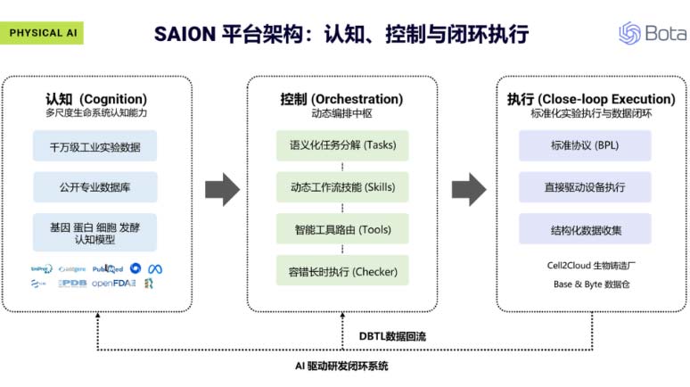 当人工智能直接参与到生物实验与生产优化中,两大万亿级产业间的转化效率边界正被重新定义。近日,珀莱雅战略合作伙伴恩和科技(Bota),正式发布全球首个面向生物制造领域的Physical AI平台——SAION AI,此举标志着生物制造正式进入自动化闭环新阶段。双方将围绕合成生物学与AI技术在化妆品及创新生物材料领域的应用展开协同探索,旨在打通从AI生物发现、功效原料量产到消费终端应用的高效转化链路。