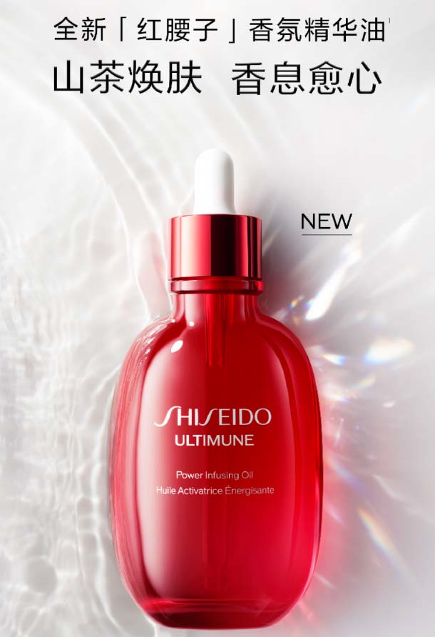 资生堂全新上线--「红腰子」香氛精华油,抗老精华同源,细胞级抗老。微生物山茶花精粹,去除肌肤老化细胞,焕活缎光肌。馥郁花香柑橘调,前调佛手柑,唤醒感官;中调茉莉、铃兰,洁净白花,舒缓身心;后调雪松、麝香,清冷木香,悠然如梦。水包油质地,触肤即融,轻盈油养;按摩时活性成分快速吸收,还能释放标志性的治愈香气。