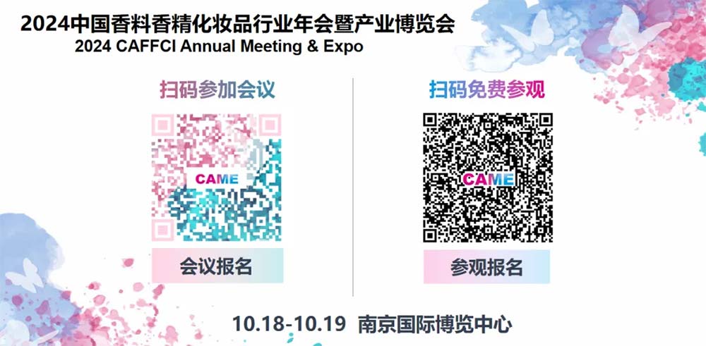 *更多信息请搜索关注“中国香料香精化妆品工业协会”微信公众号或直接扫码报名参加2024CAME↓