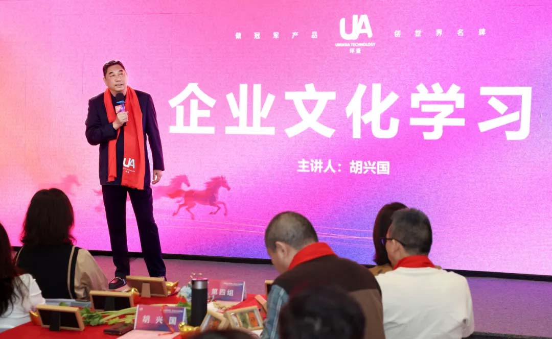在喜庆祥和的氛围中,环亚集团董事长胡兴国先生发表了企业文化主题宣贯,他站位国家发展大势、立足行业变局,以高瞻远瞩的视角为全员注入了奋进的精神动力。胡董客观剖析当下市场的激烈竞争态势,却更坚定了对国家发展、企业前行的信心。他提到,国家扶持政策的加持、中国崛起的时代浪潮,以及国人的勤奋韧性,皆是环亚破局前行的底气所在。