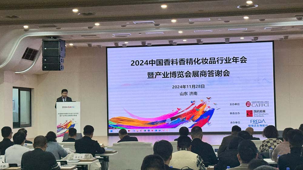 11月28日下午,2024中国香料香精化妆品行业年会暨产业博览会(以下简称:2024CAME)答谢会在山东福瑞达智美科创园成功举办。这次答谢会由中国香料香精化妆品工业协会(以下简称:中国香妆协会)主办,国药励展展览有限责任公司(以下简称:国药励展)联合主办,山东福瑞达生物股份有限公司(以下简称:福瑞达生物股份)承办。