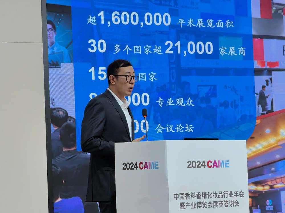 中国香妆协会会展部副主任胡晟进行了有关2024CAME回顾与2025年展会初步安排的分享,国药励展刘双阳进行了中国香妆行业博览会特点与分析的分享,中国香妆协会产业研究中心主任姚永斌进行了2024CAME媒体传播报告的分享。