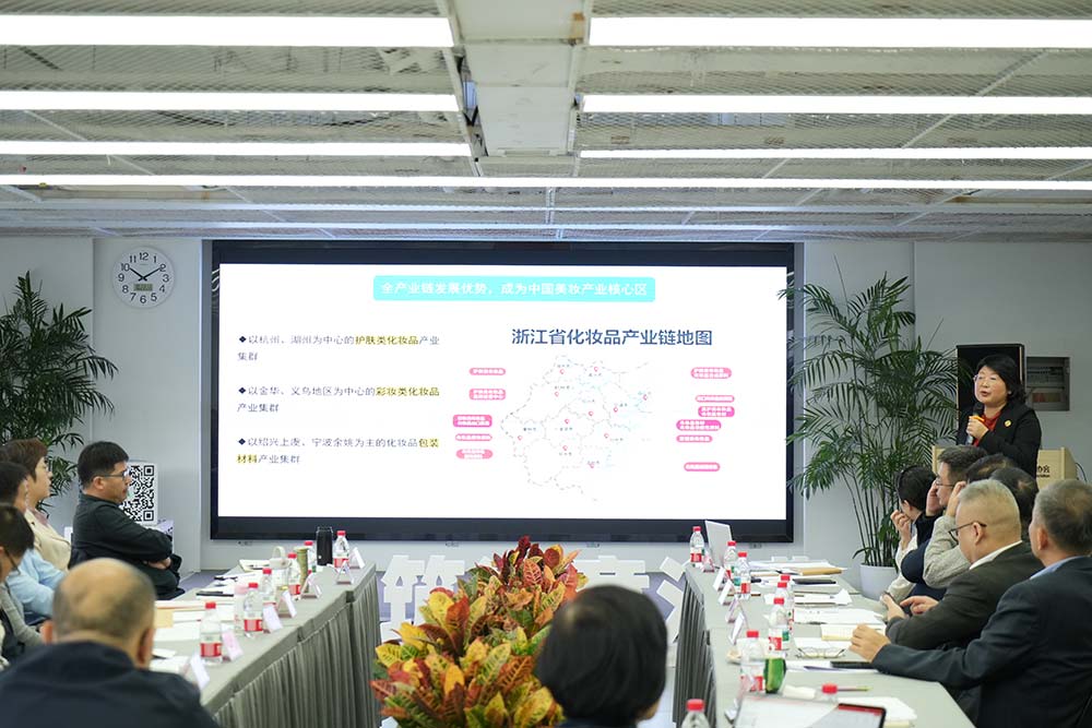 会议由中国香妆协会产业研究中心主任姚永斌主持。中国香妆协会理事长颜江瑛在致辞中表示,浙江拥有百亿级头部企业及一批高端民族品牌,是我国重要的化妆品产业省份。在国货品牌市场占比不断提升的背景下,浙江化妆品产业的发展具有重要示范意义。她指出,“十四五”期间行业发展目标相对分散、企业各自为战,缺乏系统合力。面对国家对行业组织提出的更高要求,中国香妆协会将以制定好“十五五”规划为契机,更好地服务行业、政府与社会。