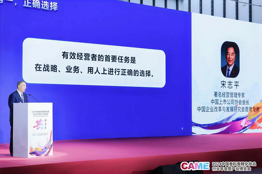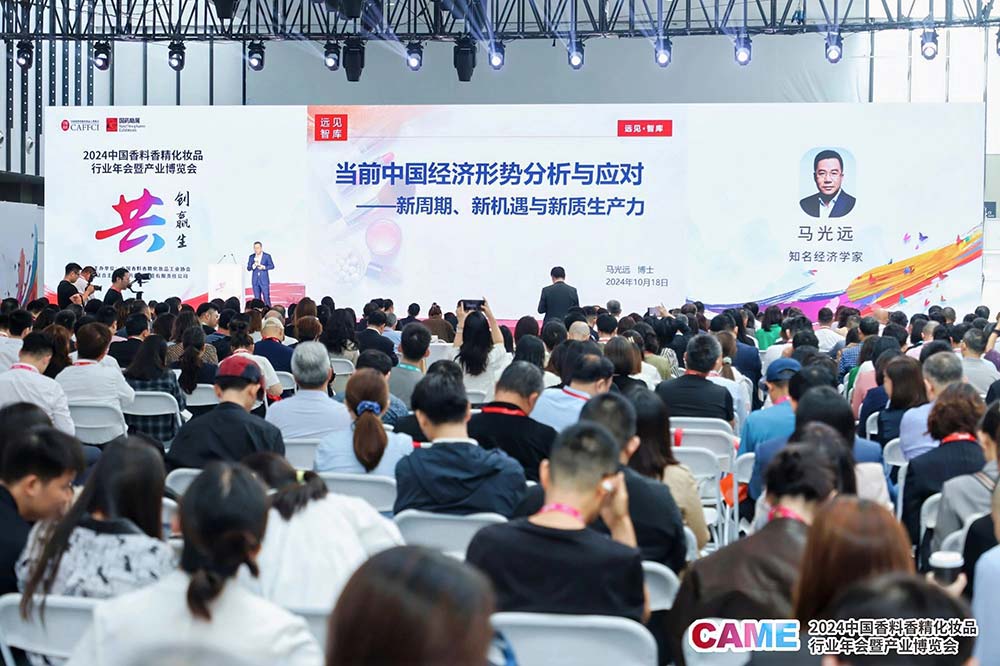 中国香料香精化妆品工业协会(以下简称:中国香妆协会)理事长颜江瑛,南京市人民政府市长陈之常,南京市委常委、南京江北新区党工委书记陆卫东,中国工程院院士、江南大学校长陈卫,国际食用香料工业组织(IOFI)执行总监Sven Ballschmiede ,日本化妆品工业会(JCIA)专务执行理事山本顺二(Yamamoto Junji),韩国化妆品协会(KCA)副会长延在昊(Yeon Jaeho)先后致辞。知名经济学家马光远博士进行了《当前中国经济形势分析与应对——新周期、新机遇与新质生产力》的主题演讲。