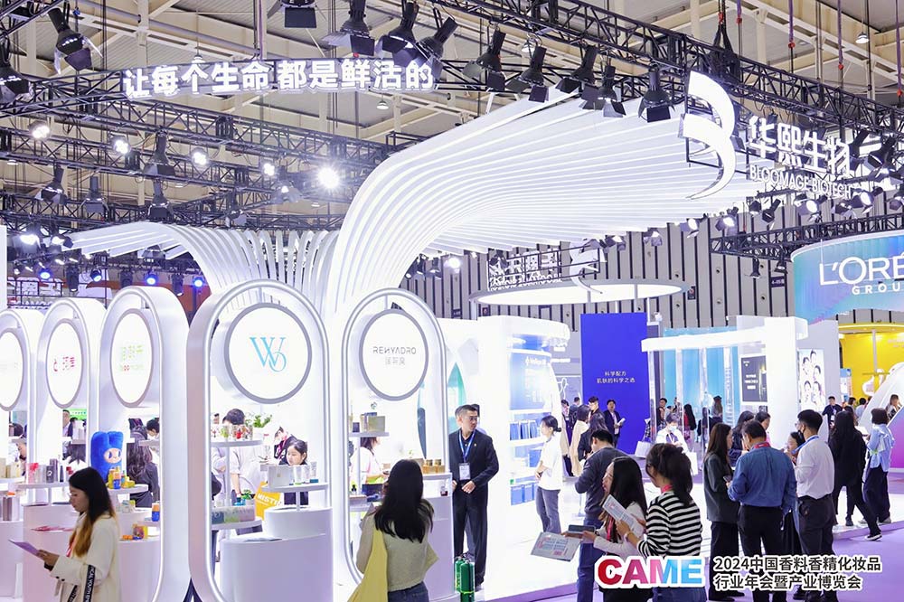 同日,产业博览会吸引了众多观众观展。据了解,2024CAME以“共创共赢共生”为主题,分为行业年会、产业博览会、香妆盛典和美力大赏四大模块,汇聚了上百家国内外头部企业。其中,展览面积达1.5万平方米,汇聚了众多品牌和产品。