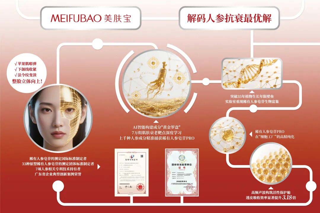 2023年,环亚美肤宝在人参科研深耕超过20年的基础上实现关键性技术突破——在长白山人参182种人参皂苷中,通过AI靶向筛选与人工神经网络算法模型,成功锁定功效表现和生物利用度更高的稀有人参皂苷PRO。