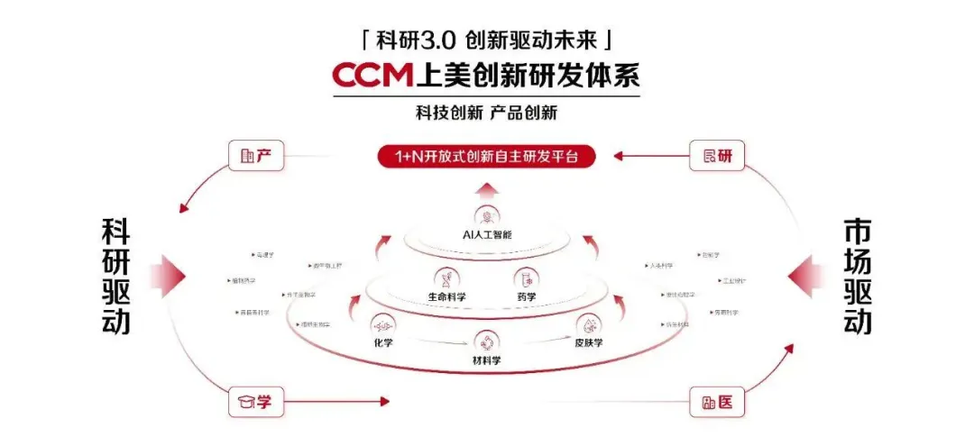 这套研发体系以化学、材料学和皮肤学为基础,进一步融合生命科学和药学,叠加AI人工智能等前沿新技术,相当于构建了一所“功能性化妆品 ”的科研院校,视野开阔且足够前沿。