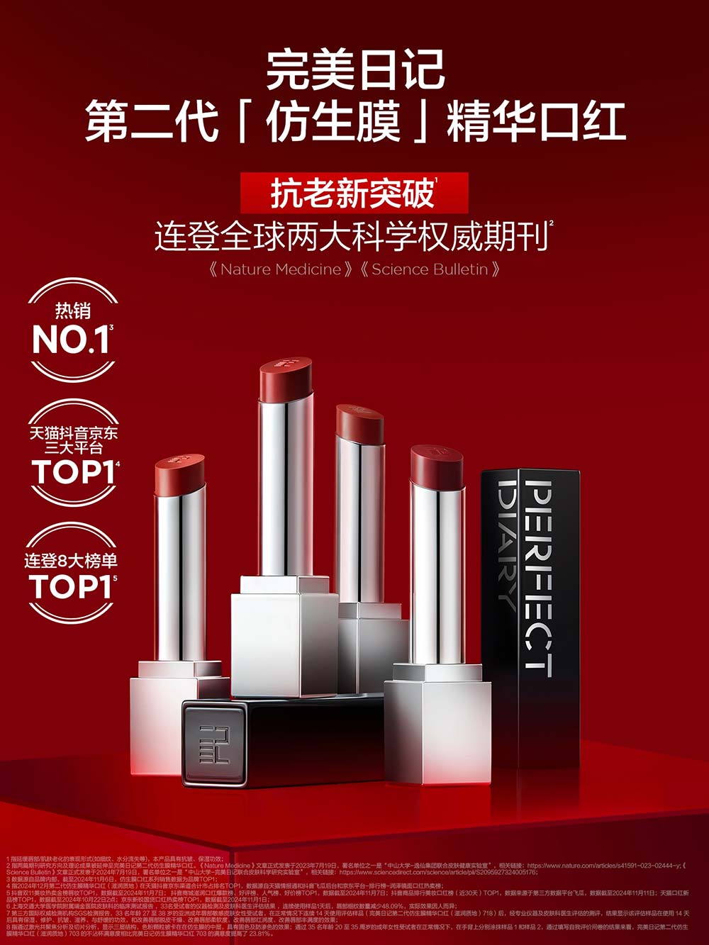 去年,在23所权威科研机构鼎力合作、42位科学家共研抗老命题、5大行业学术论坛共同探讨下,第二代仿生膜科技应运而生,完美日记母公司和中山大学建立的联合实验室在《自然医学》(Nature Medicine)与《科学通报》(Science Bulletin)两大科学权威期刊参与发表了两篇抗衰老相关的文章,为功效彩妆开启了新的里程碑。