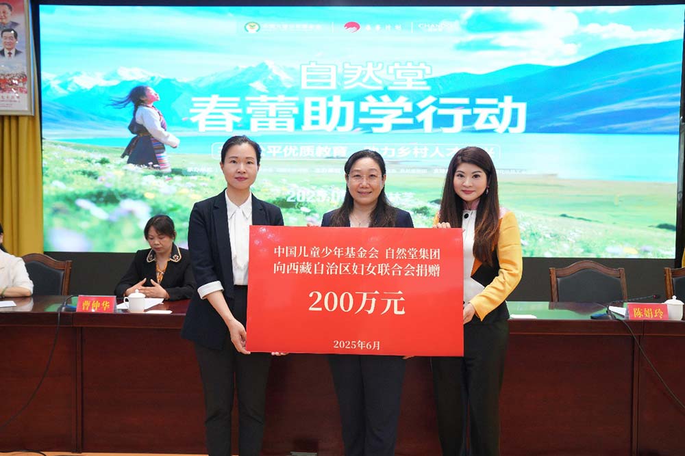 2025年6月25日-26日,由自然堂联合中国儿童少年基金会发起、中国香料香精化妆品工业协会支持的“自然堂春蕾助学行动”在西藏林芝举行。此次活动向西藏自治区妇联捐赠200万元,用于资助来自西藏大学、西藏藏医药大学、西藏农牧学院、林芝市职业技术学校、林芝市第一中学、林芝市第二高级中学及林芝市广东实验中学的350名品学兼优的女生,助力她们顺利完成学业,共享公平优质教育,为西藏乡村人才振兴注入“她力量”。