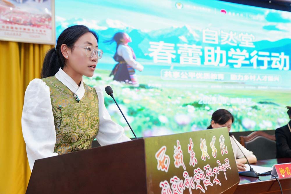 今年,自然堂春蕾助学行动惠及200名林芝地区与150名拉萨地区的优秀女学生,为她们的求学之路注入希望与力量。活动现场,春蕾学生代表真情流露,分享了她们的故事与对未来的憧憬。