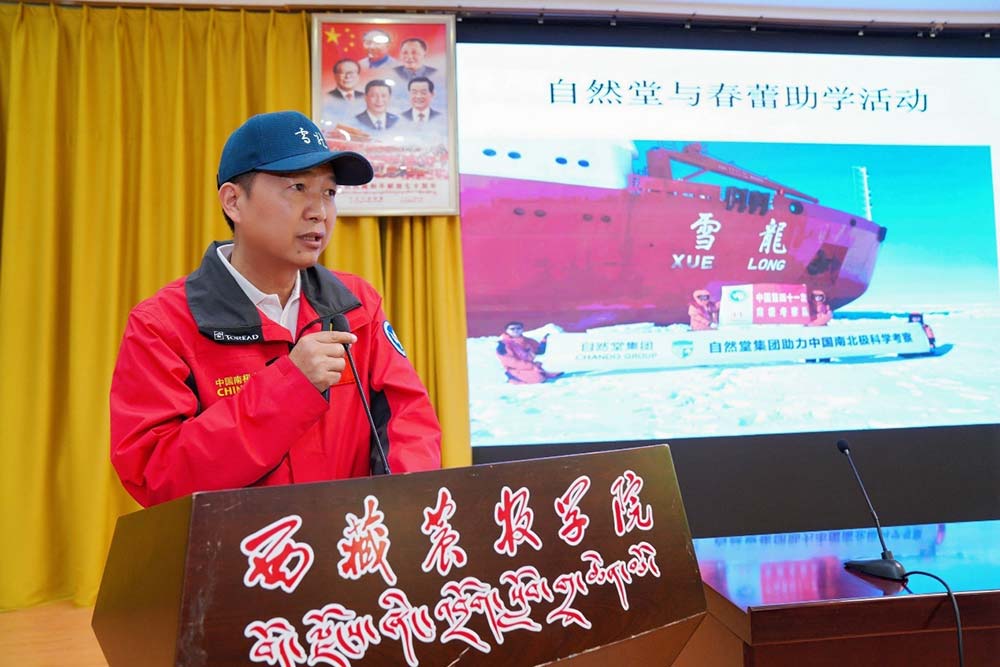 为了更好地帮助春蕾女生提升综合素养,开拓科技视野,今年自然堂春蕾助学行动特别邀请了自然资源部中国极地研究中心高级船长、长城越冬站站长沈权于西藏农牧学院与林芝市第一中学开设科普讲座,通过他30多年18次前往南北极科考的经历,讲述了中国极地科考的艰辛历程与辉煌成就,并以科考工作者不畏艰险、勇攀高峰的爱国情怀和科学精神激发了在场学子探索未知与勇敢追梦的勇气。