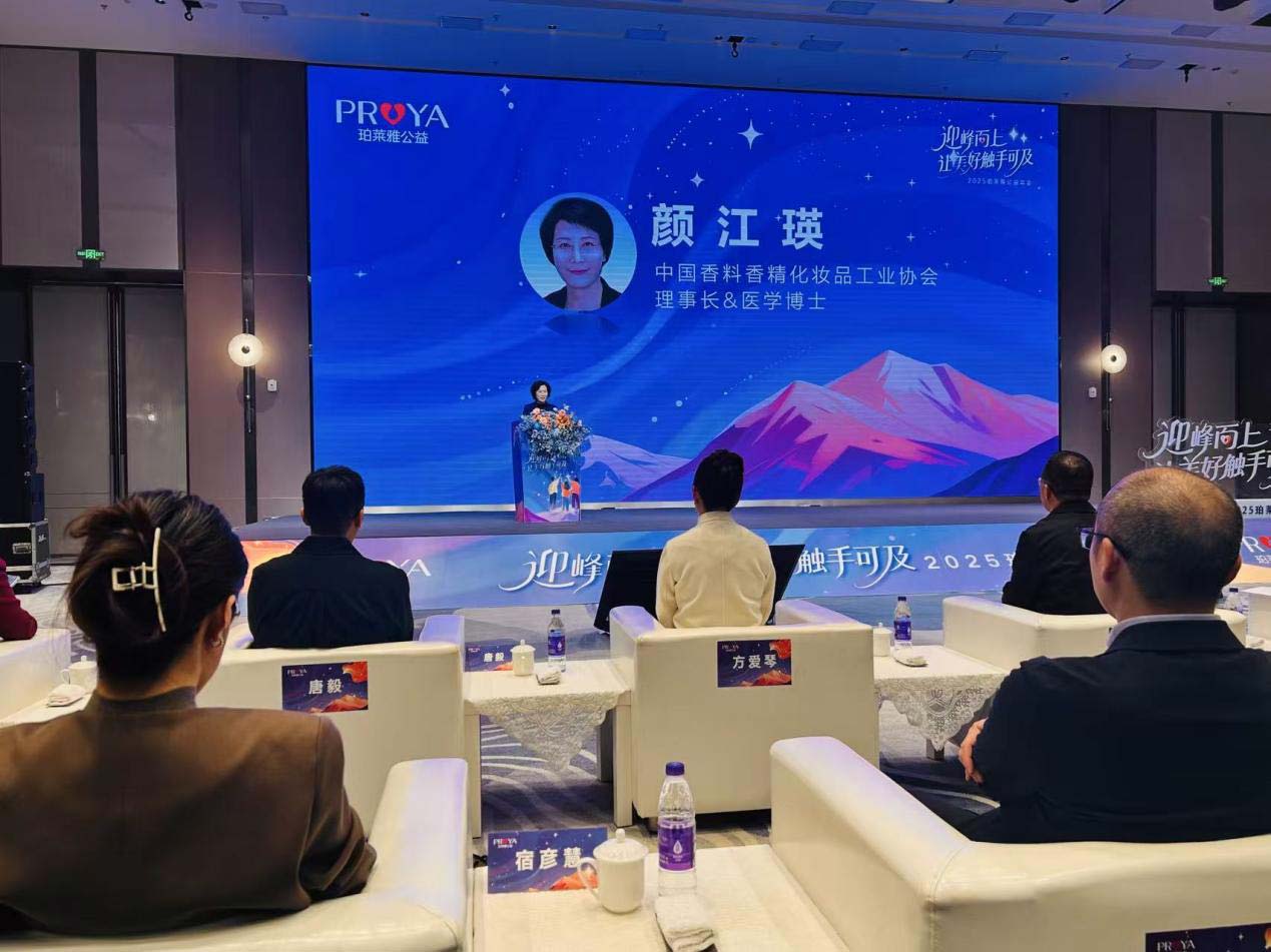 12月20日,以“迎峰而上,让美好触手可及”为主题的2025珀莱雅公益年会在浙江余姚阳明观堂酒店隆重召开。中国香料香精化妆品工业协会(以下简称中国香妆协会)、医学博士颜江瑛受邀出席并致辞。