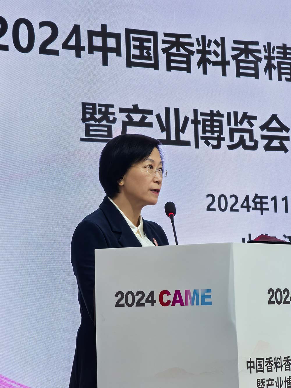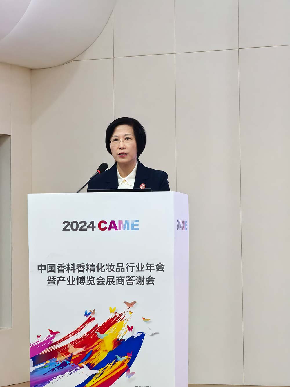 中国香妆协会理事长、医学博士颜江瑛在答谢会上首先发表了致辞。她表示,继在南京成功举办2024中国香料香精化妆品行业年会暨产业博览会之后,至今有一个多月的时间。在这个时间里,她是百感交集的。总的来说,有四感:感谢,感动,感恩、感怀。