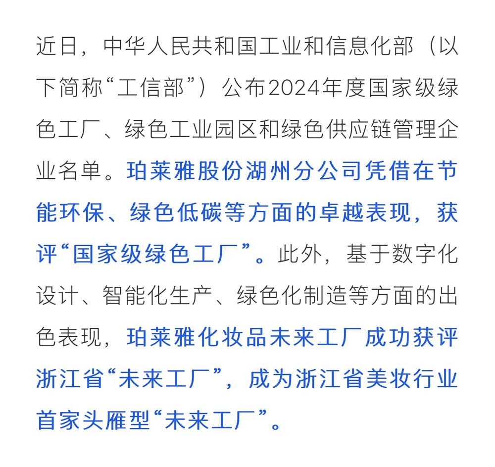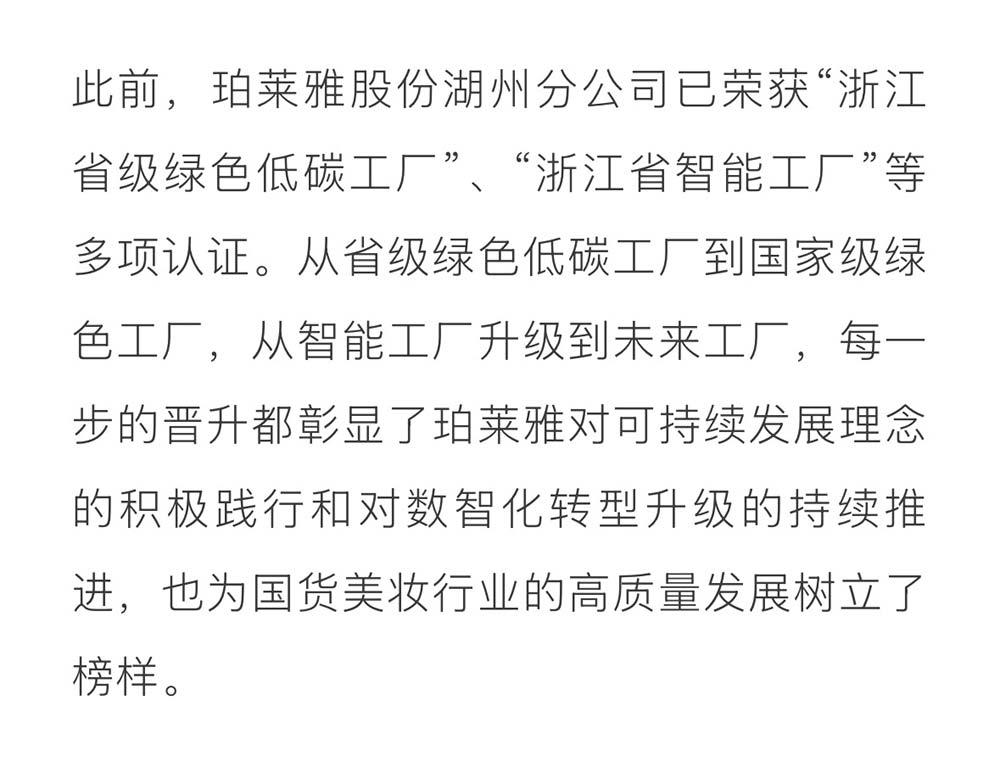 绿色智造双轮驱动!珀莱雅荣获“国家级绿色工厂”与“浙江省未来工厂”双认证