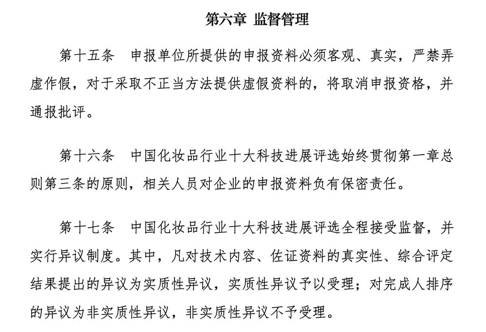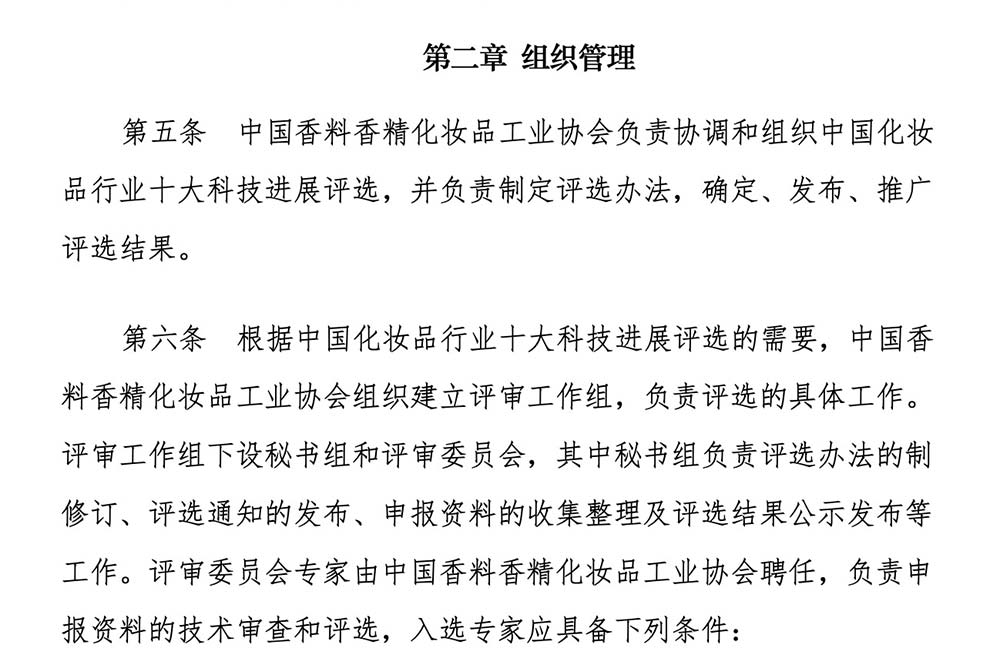 中国化妆品行业十大科技进展评选工作管理办法(试行)