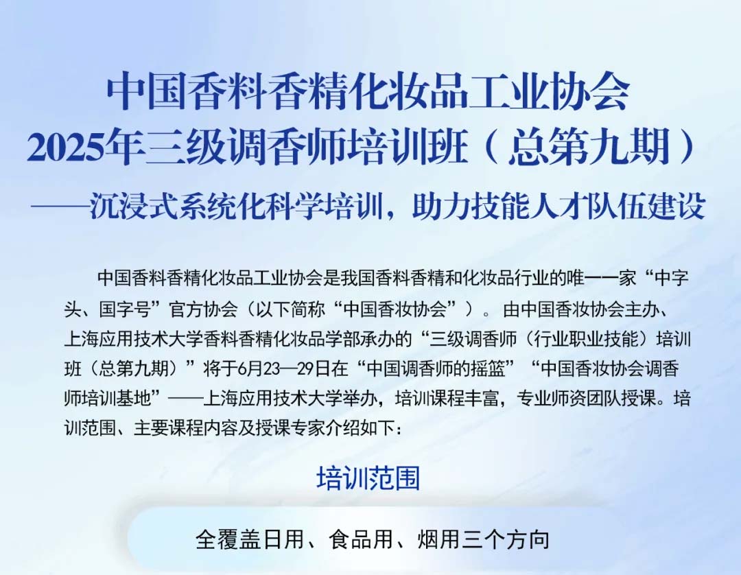 中国香妆协会2025年第九期调香师培训——开启科学培训,锻造技能人才