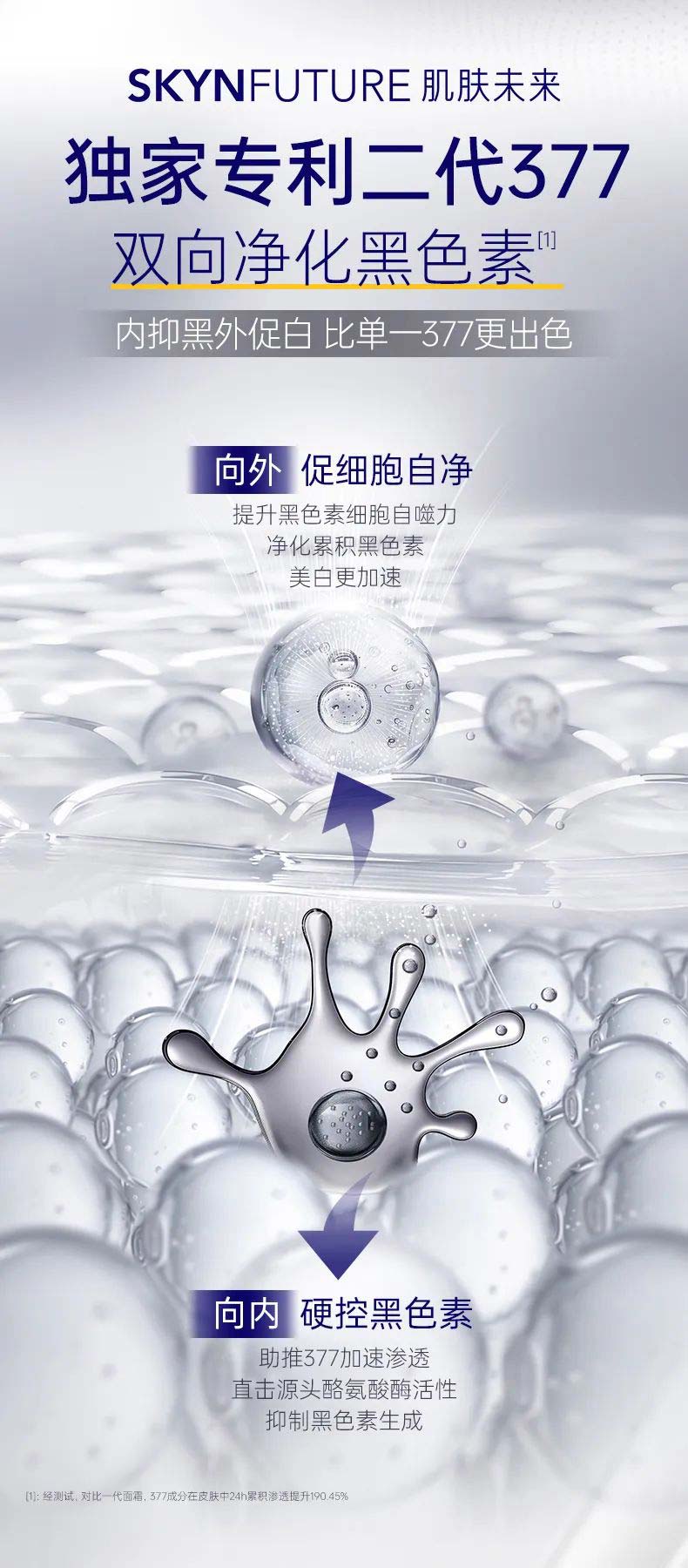[3] 经测试,对比一代面霜,377成分在皮肤中24h累积渗透提升190.45%。
