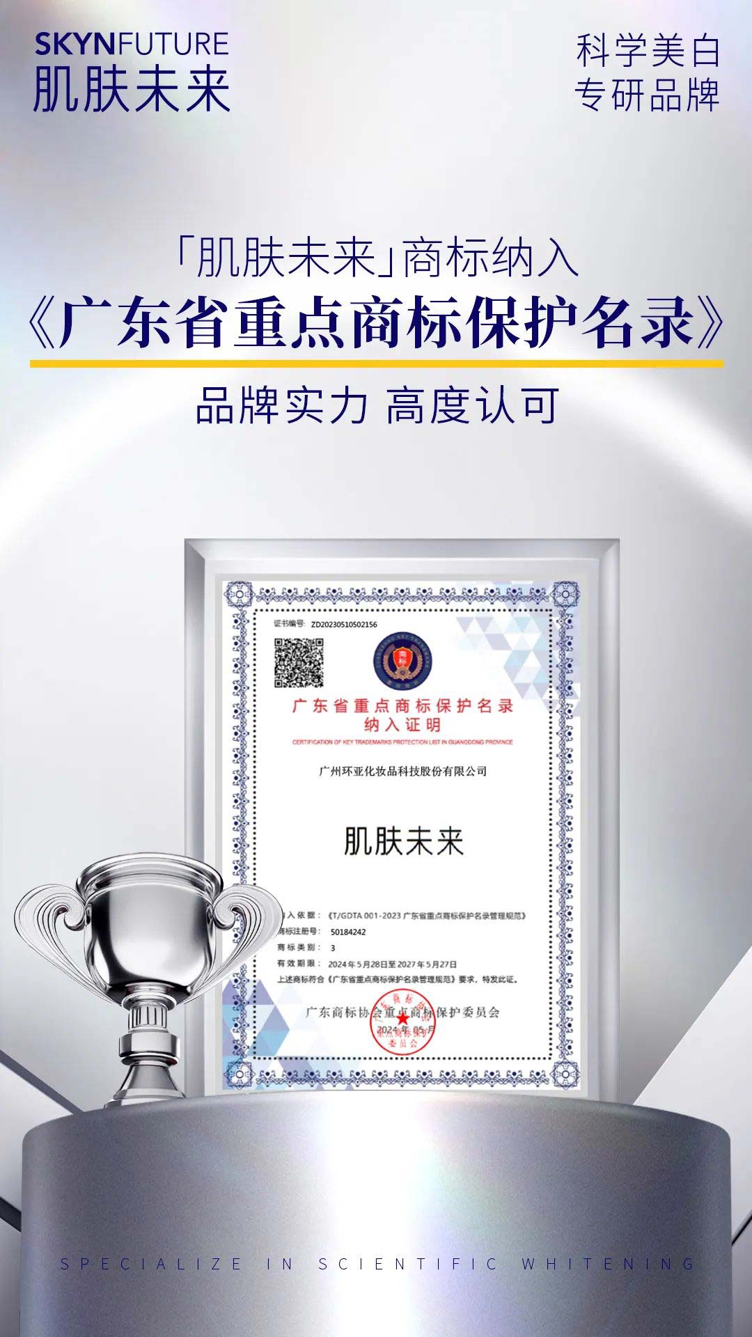 高质量发展的核心是创新,而标志就是品牌力。 所有的坚持和努力都不会被辜负,肌肤未来品牌被行业媒体评为「2023年度中国百强品牌」;而「肌肤未来」也被广东商标协会重点商标保护委员会纳入《广东省重点商标保护名录》。