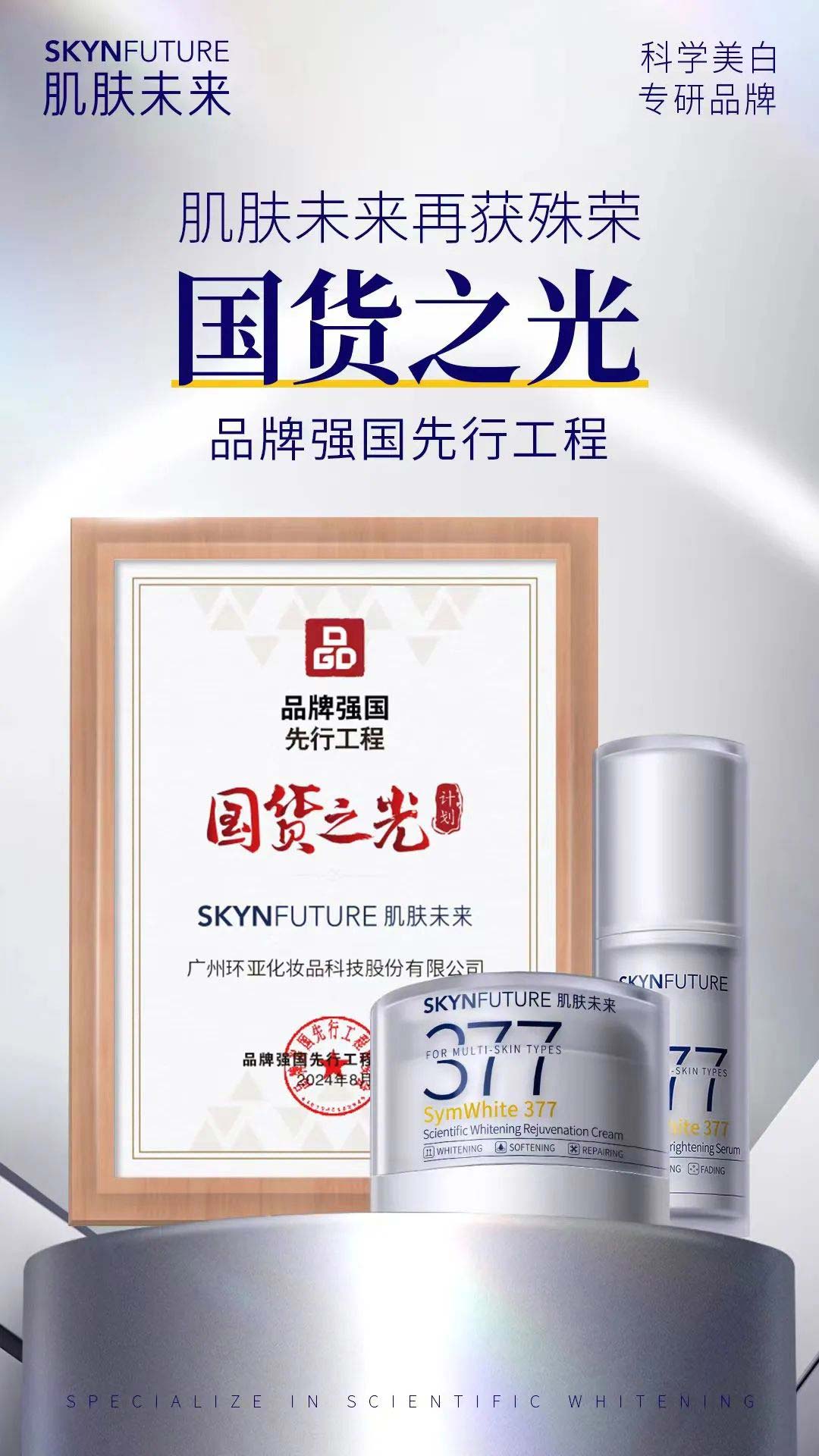 8月8日,以“新质与突围,打造更具全球引领力”为主题的第十八届中国品牌节主题活动2024广东品牌全球竞争力峰会在广州举行。峰会上,肌肤未来成功入选2024年品牌强国先行工程“国货之光计划”。