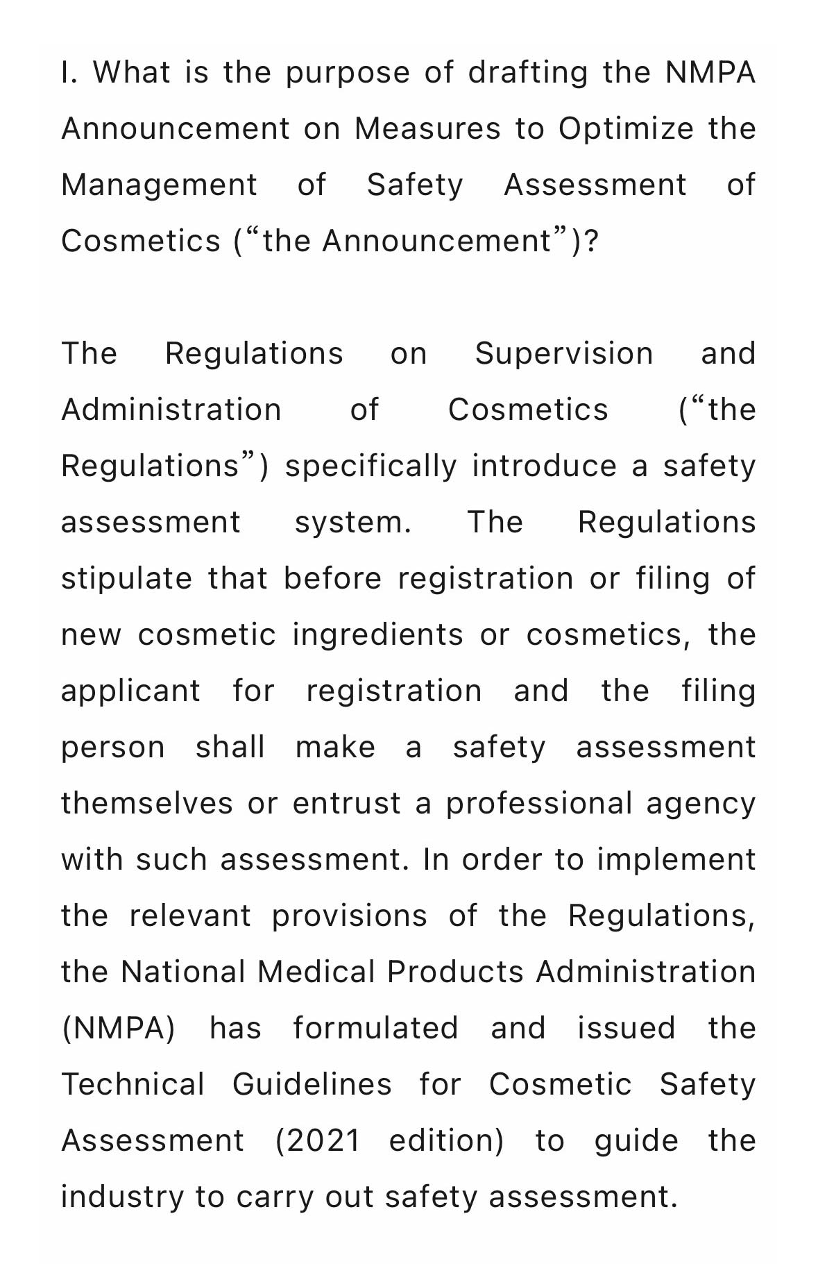 一、 《国家局发布关于优化化妆品安全评估管理若干措施的公告》(以下简称《公告》)起草的目的是什么?