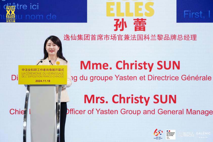 逸仙集团CMO及法国科兰黎品牌总经理孙蕾女士在致辞中表示:“本次展览不仅是对两国深厚友谊的礼赞,更是对女性科学家们在推动科学进步中卓越贡献的致敬。法国科兰黎的首席科学官承静女士作为入选本次展览的化学家代表,不仅在科研领域成就卓越,更为法国科兰黎的产品研发注入无尽的灵感与动力。”