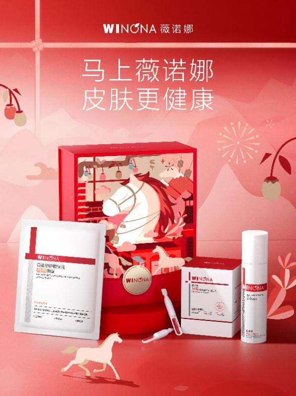马年皮肤健康礼盒延续了薇诺娜 “守护皮肤健康” 的初心,提供了一套敏感肌健康问题解决方案,从褪红、修护到维稳,递上 “马上健康、马上红运” 的新年祝福: