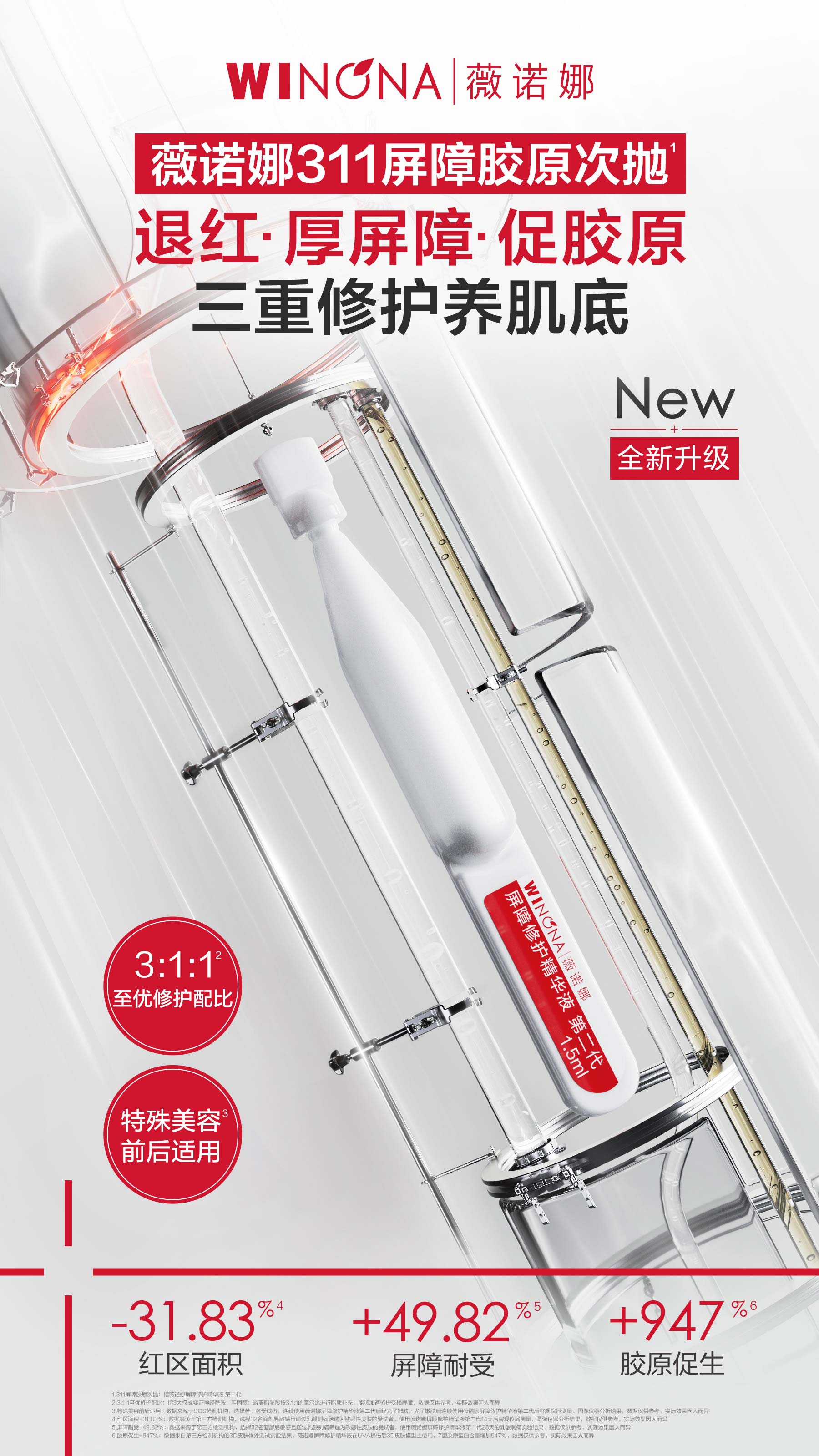 311屏障胶原次抛 :退红 · 厚屏障 · 促胶原 三重修护养肌底