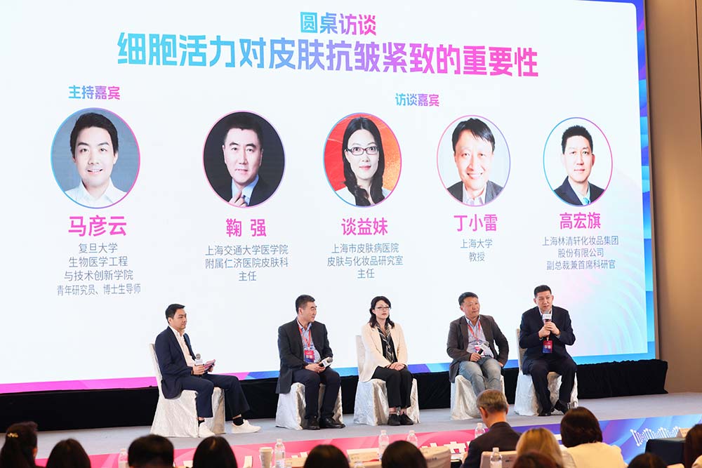 在复旦大学生物医学工程与技术创新学院研究员马彦云博士主持的圆桌论坛上,上海交通大学医学院附属仁济医院皮肤科主任鞠强、上海市皮肤病医院皮肤与化妆品研究室主任谈益妹、上海大学教授丁小雷与高宏旗等专家围绕“细胞活力对皮肤抗皱紧致的重要性”,从临床医学、功效评价与法规、高校学术、企业研发四个视角展开跨界对话。