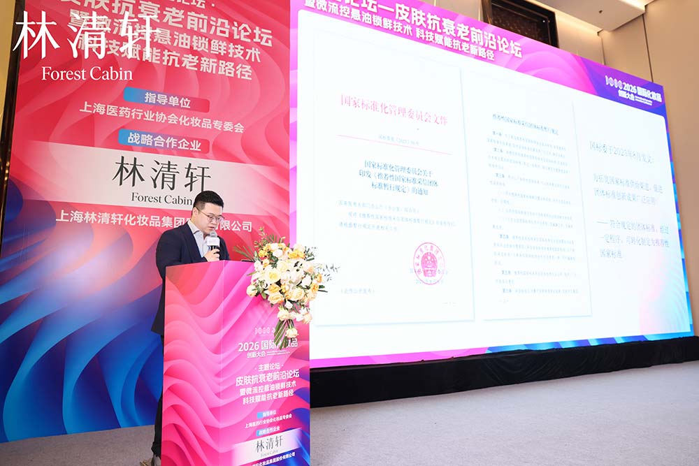 4月22日,在上海召开的2026国际化妆品创新大会(ICIC)上,“皮肤抗衰老前沿论坛暨微流控悬油锁鲜技术·科技赋能抗老新路径主题论坛”隆重举行。林清轩携小金珠精华水2.0新技术、新成分亮相论坛,并发布《以油养肤功效型油凝珠精华水技术规范》团体标准。