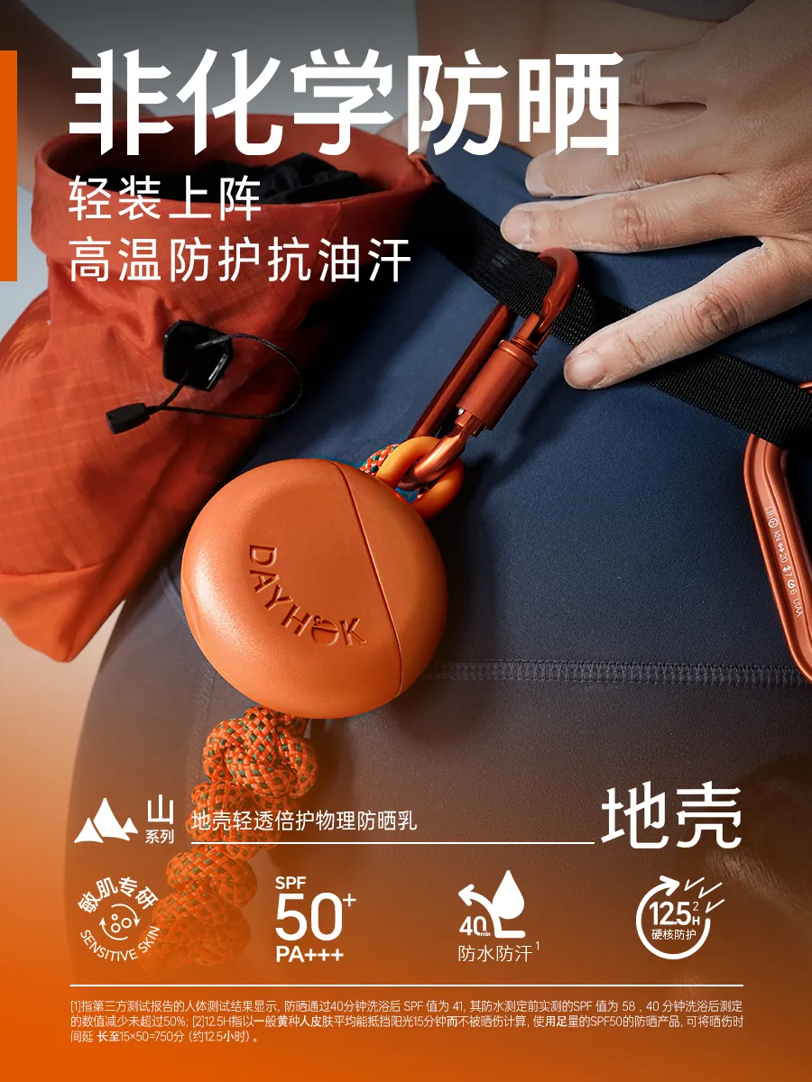 地壳极具创新性的突破在于其场景化产品策略。品牌突破传统"通用型配方"的局限,以场景为锚点,从"人以群分"转向"人以场分",在配方技术层面,搭载的4大核心防晒技术,针对山系、海系、城系三大户外场景的不同需求,也做了非常多的创新性突破:针对山场景中海拔变化导致的紫外线强度波动、汗水冲刷和高强度运动摩擦,地壳开发了高防护、耐磨擦、防水汗的山系防晒;针对海场景中高盐度海水加速防晒膜分解、长时间大面积肌肤裸露和强反射光多维侵袭的问题,推出了防暴晒、强抗水、御光热的海系防晒;针对城场景中的紫外线/污染诱发氧化、与底妆叠涂搓泥和日常通勤超长待机负担等,城系防晒更注重“轻透薄”的使用感,开发了广谱全防护、轻薄透、抗光损的城系防晒。安全不透皮,保护易敏脆弱肌肤。