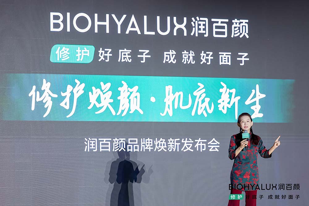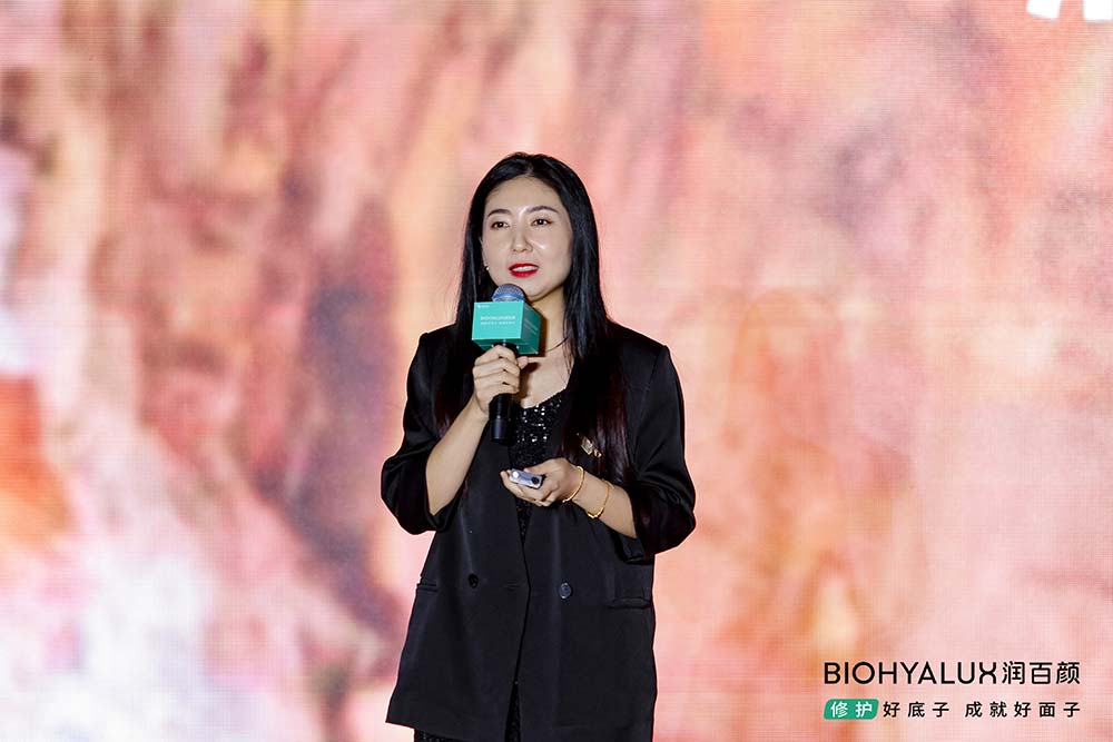 随后,润百颜总经理高文婷女士阐述了品牌全新升级战略。"造风"始终是润百颜的核心关键词,无论是开创次抛品类还是首个国货透明质酸真皮填充剂,品牌始终以创新引领行业风潮。基于对市场的深刻洞察,润百颜发现超7成国人处于肌肤亚健康状态,修护已成为皮肤健康的根源诉求。而此番,润百颜提出全新品牌定位:修护好底子 成就好面子,旨在强调好的肌底修护才是一切的基础。