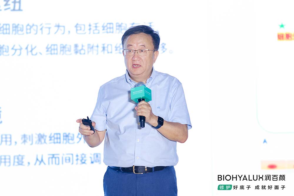石海宁教授曾任美国哈佛大学医学院/麻州总医院黏膜免疫及生物学研究中心教授,在多家国际权威期刊担任审稿人或编委,以及美国国立卫生研究院(NIH)、加拿大自然科学与工程研究理事(NSERC)等基金会的项目评审专家。他指出,基于华熙生物多年的科学研究发现,外源侵袭和内源失衡是消费者肌肤面临的普遍挑战,而表层修护往往难以提供长期、稳定的功效。基于此,润百颜从过往市场上的“成分战争”中突围,通过技术破局,开创性地提出了“智能ECM细胞生态”的修护理念,旨在从更深层、更系统的角度解决肌肤修护问题,从而引领市场趋势。