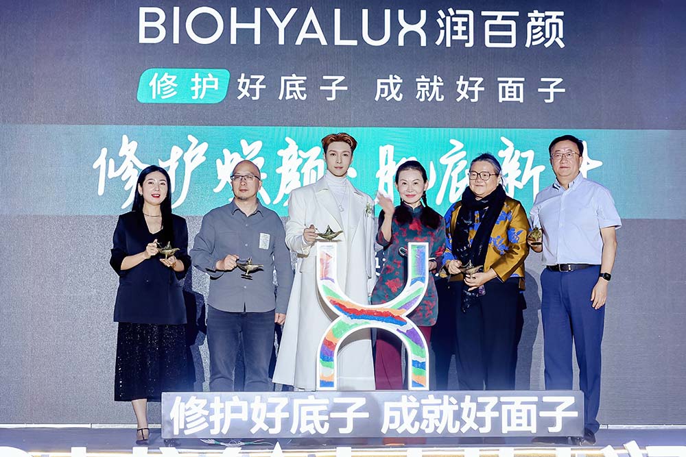左起:润百颜品牌总经理高文婷、全联房地产商会商业地产工作委员会会长王永平、润百颜全球品牌代言人张艺兴、华熙生物科技股份有限公司董事长兼CEO赵燕、知名媒体人洪晃、华熙生物皮肤与营养科学成果转化研发中心总经理石海宁从聚焦ECM到INFIHA细胞修护科技的突破,到敦煌文化元素的创新应用,再到与代言人的价值共鸣,润百颜展现了一个“科学品牌”在文化价值领域同样能够引领风潮,这个源自中国的护肤品牌正在开启属于自己的全新篇章,向世界展示国货的科技实力与文化自信。