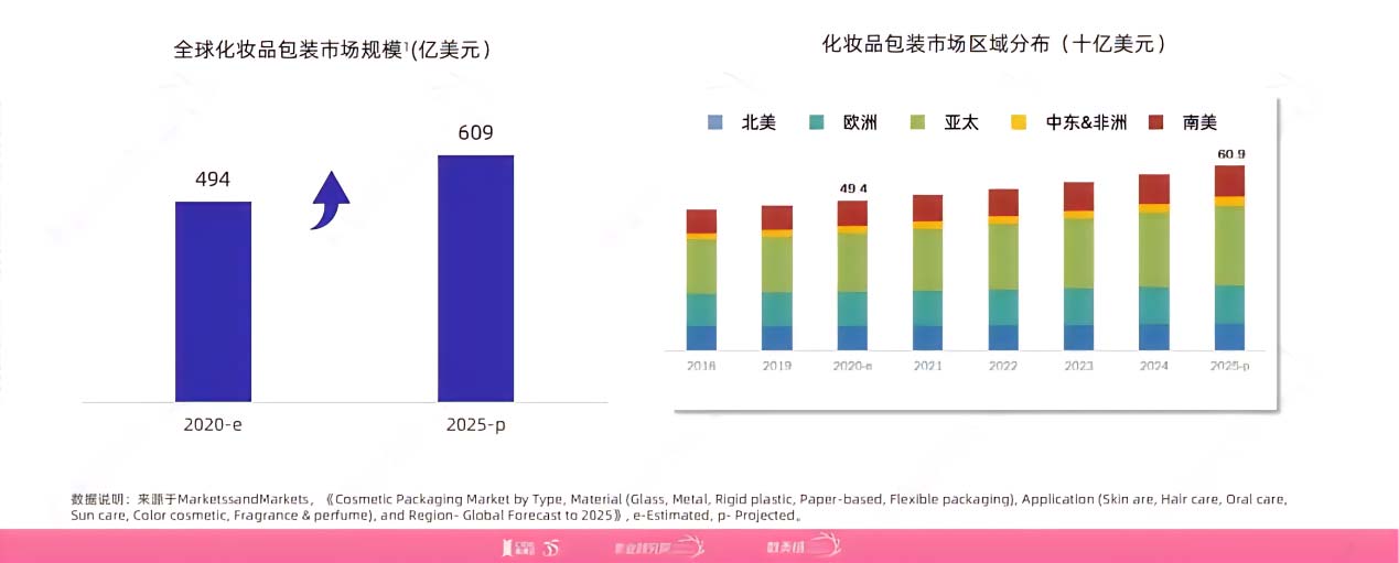 在经济性方面,根据全球市场研究机构Marketsand Markets预测,全球化妆品包装市场规模到2025年将达到4366亿元人民币,年复合增长率4.03%。除此之外,包材还具有观赏性和情绪性。