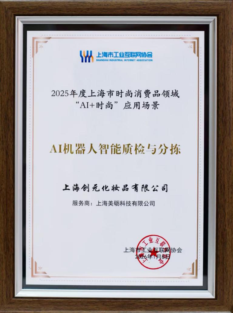 上海创元化妆品“AI机器人智能质检与分拣”项目,成功入选2025年度上海市“AI+时尚”应用场景。此项目将AI深度融入化妆品生产,引领行业向无人化、高精度的智能质控时代迈进。