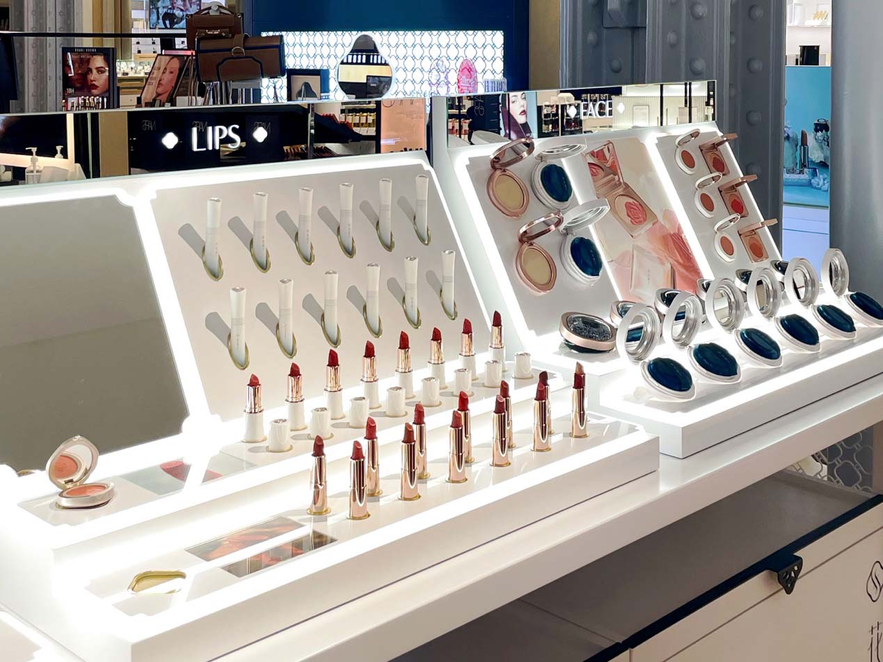 花西子专柜位于商场负一层——这里是欧洲最大的美妆专区,面积约3400平方米,汇集了180余个国际香化品牌。位于专区中心位置的花西子专柜,延用品牌独特的园林轩窗设计元素,传递出东方雅致与现代简约之美。此次花西子专柜不仅带来了海外热销产品如同心锁口红、玉养蜜粉、星宿修容盘、十二花神液体眼影等,还特别把富有民族文化特色的“蒙古族印象系列”带到了巴黎。此外,与非遗苏绣传承人共创的“刺绣限定系列”也将于10月上架售卖,为海外消费者提供一个来自东方的美妆选择和一份独特的文化体验。